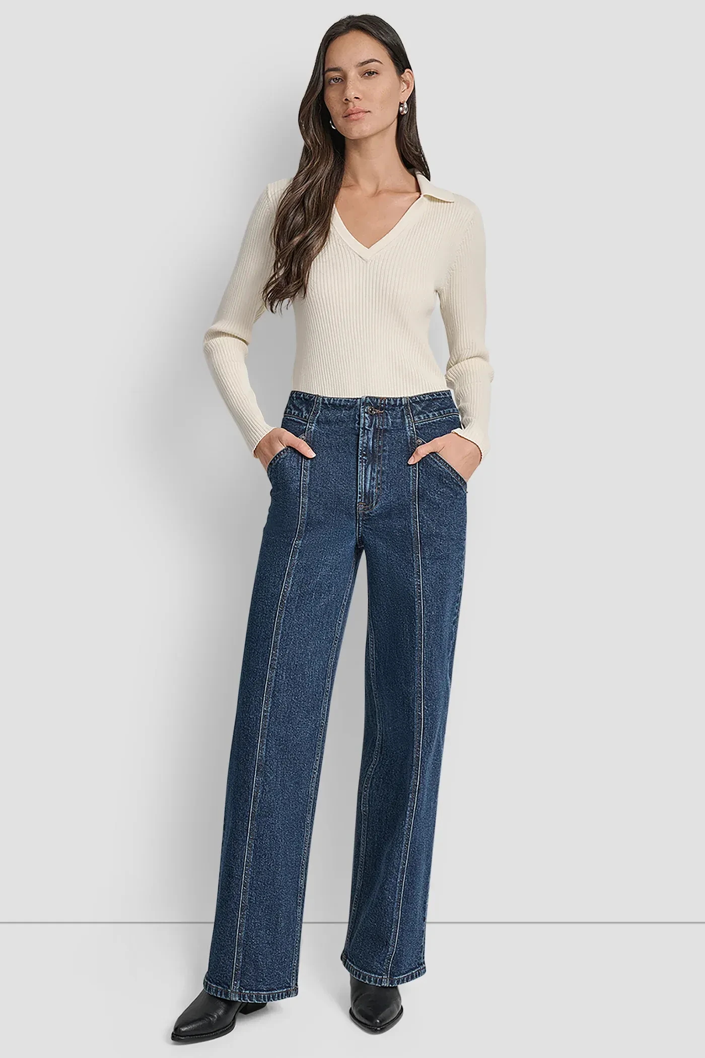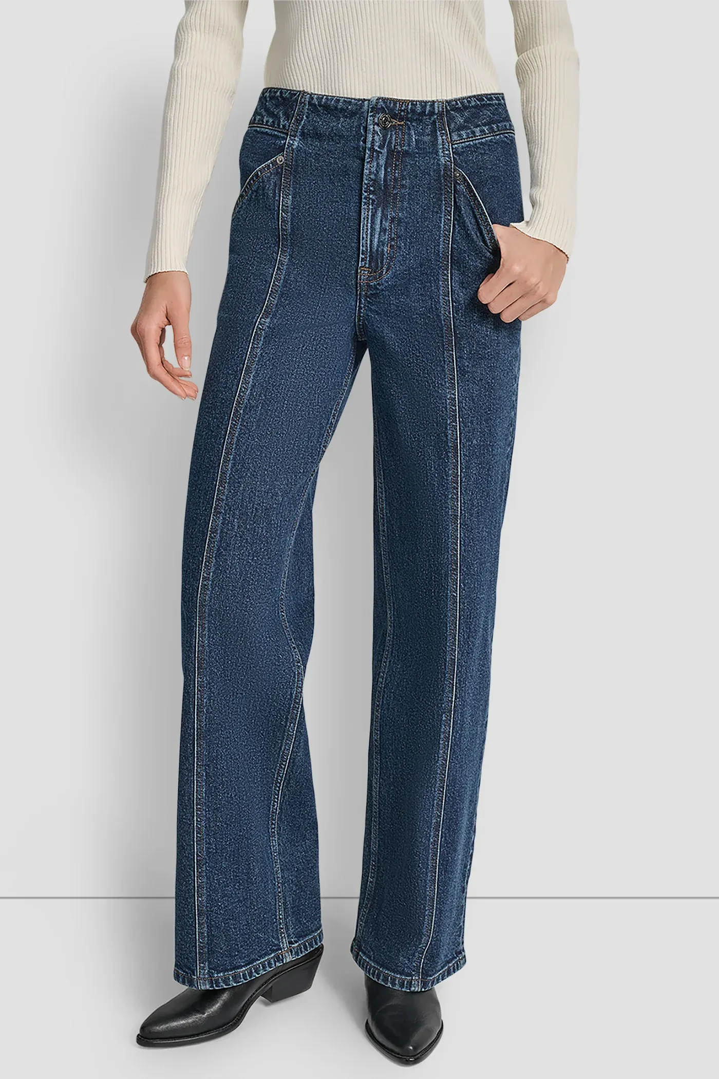High-waisted, wide-leg silhouette