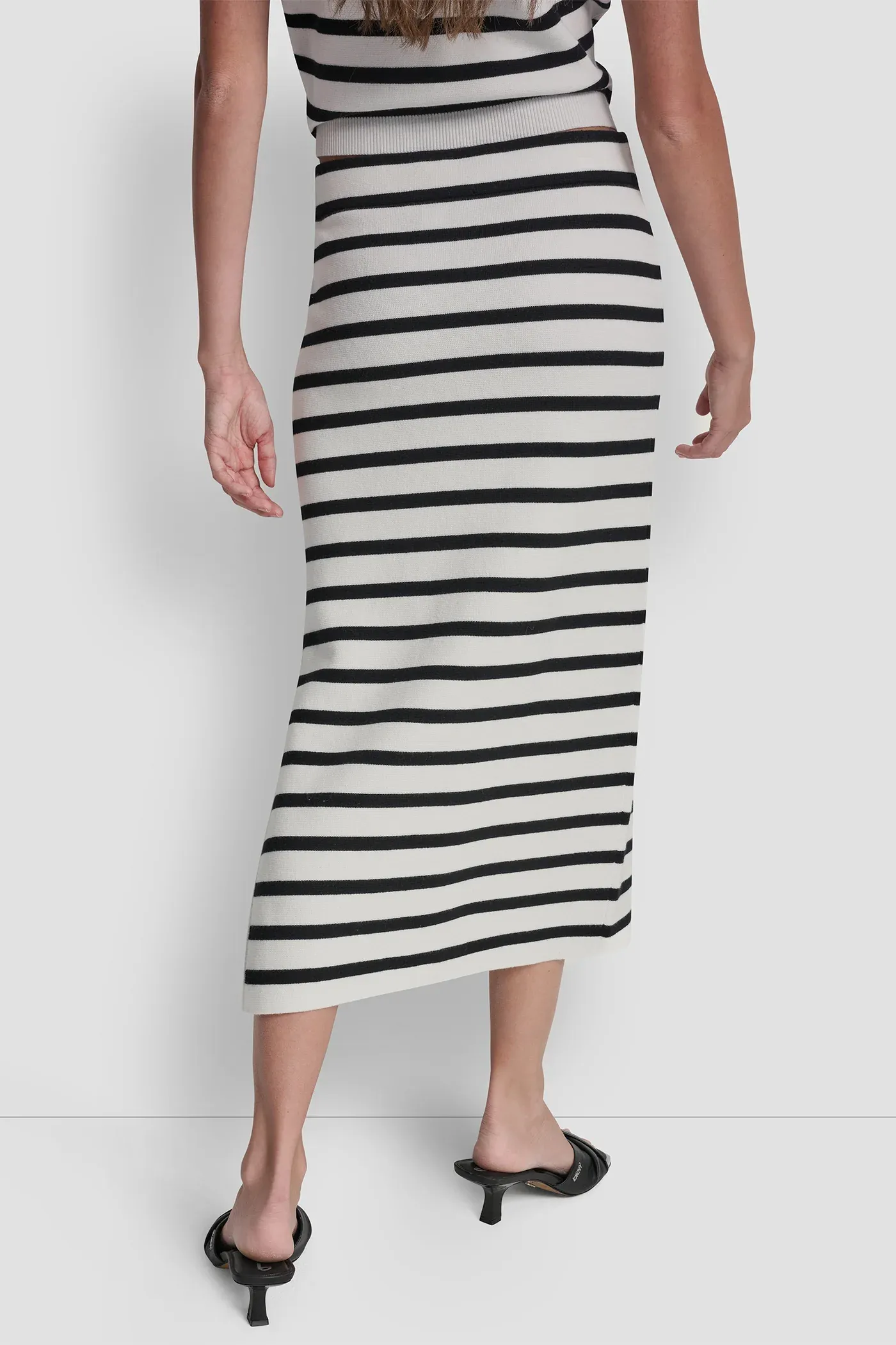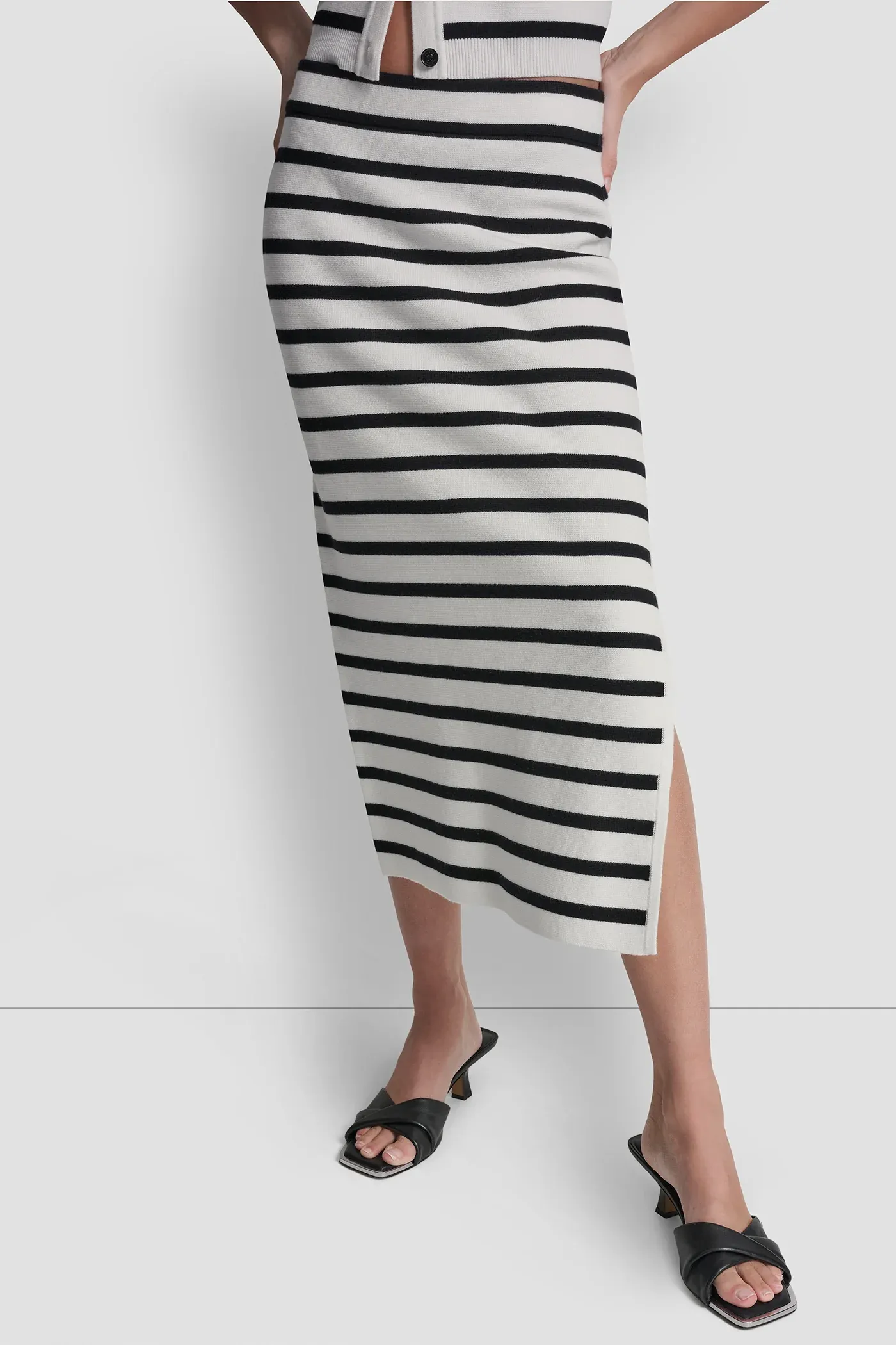 Effortlessly chic, this striped midi skirt moves with you, adding a playful touch to both casual and polished looks. Its double side slits create subtle movement that feels light and feminine.