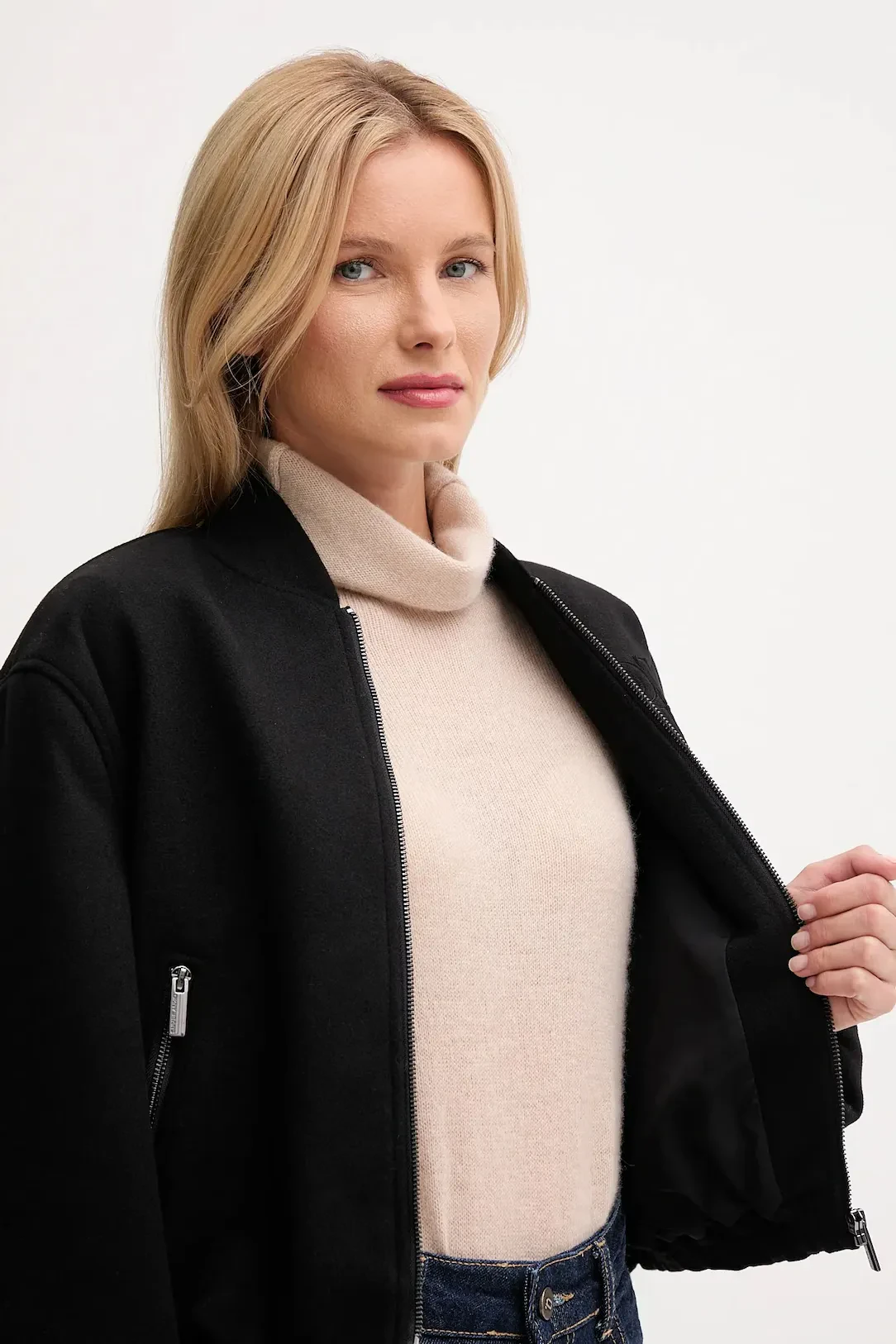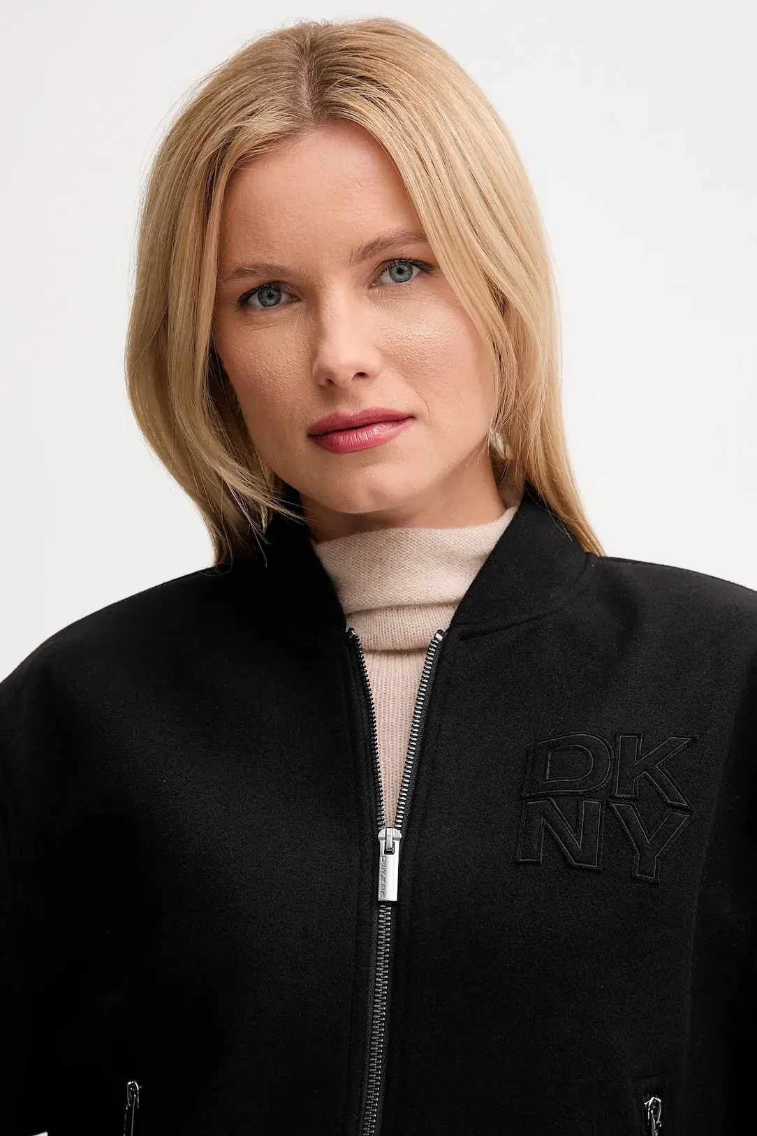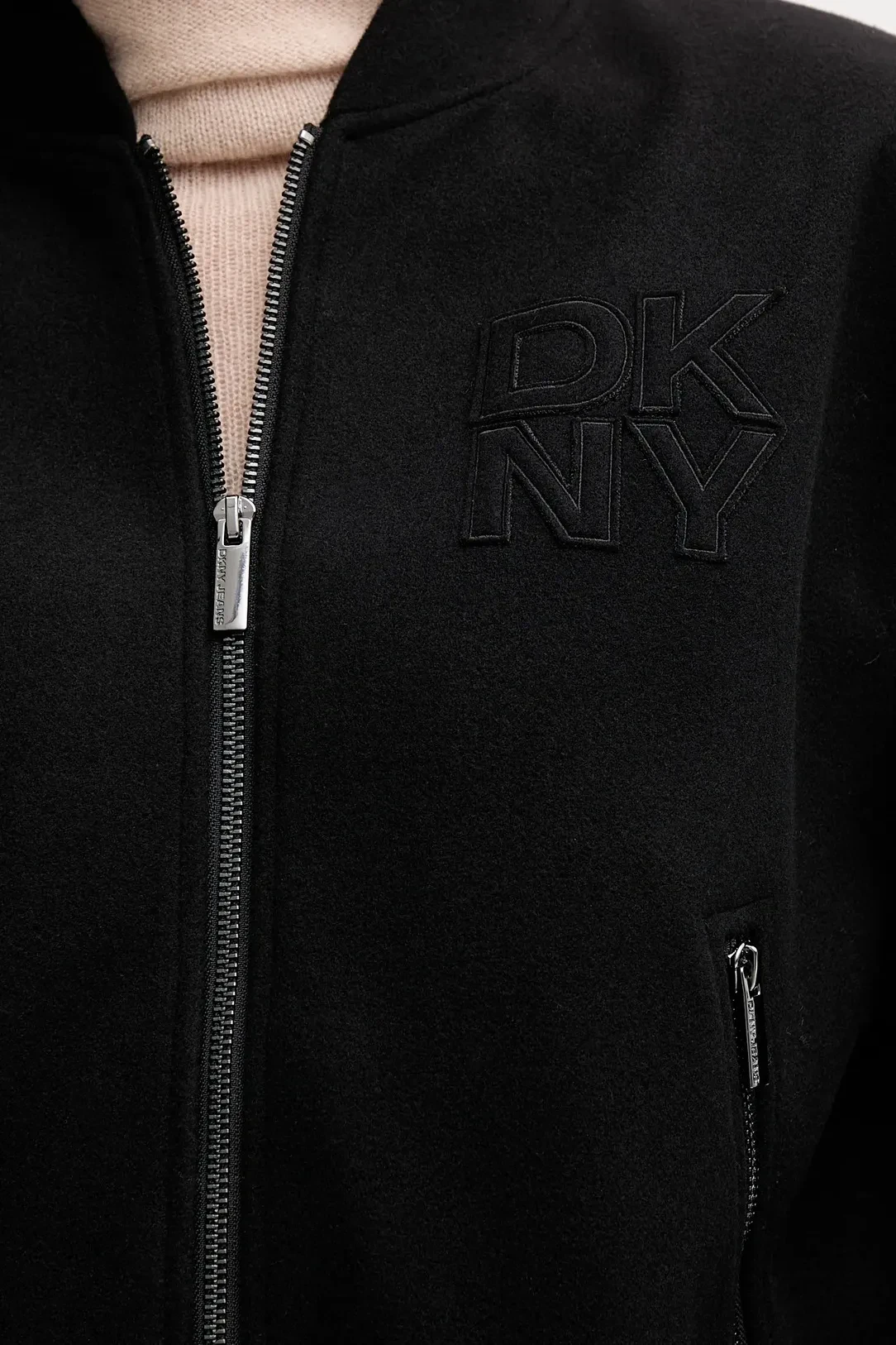 A fresh take on the classic bomber, this zip-front jacket is crafted from soft faux wool and finished with a tonal self appliqué DKNY logo for understated edge.