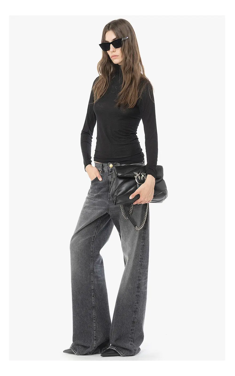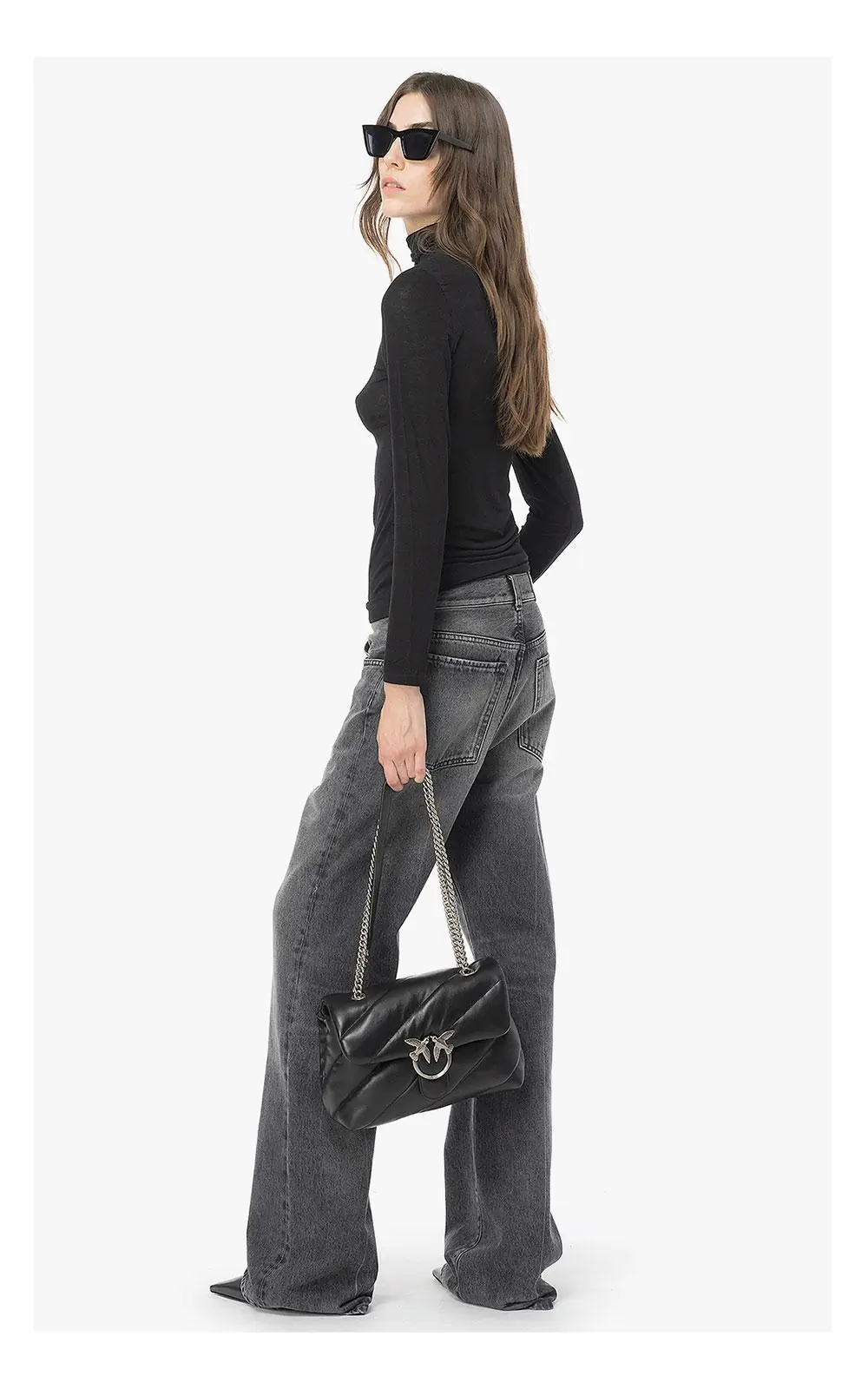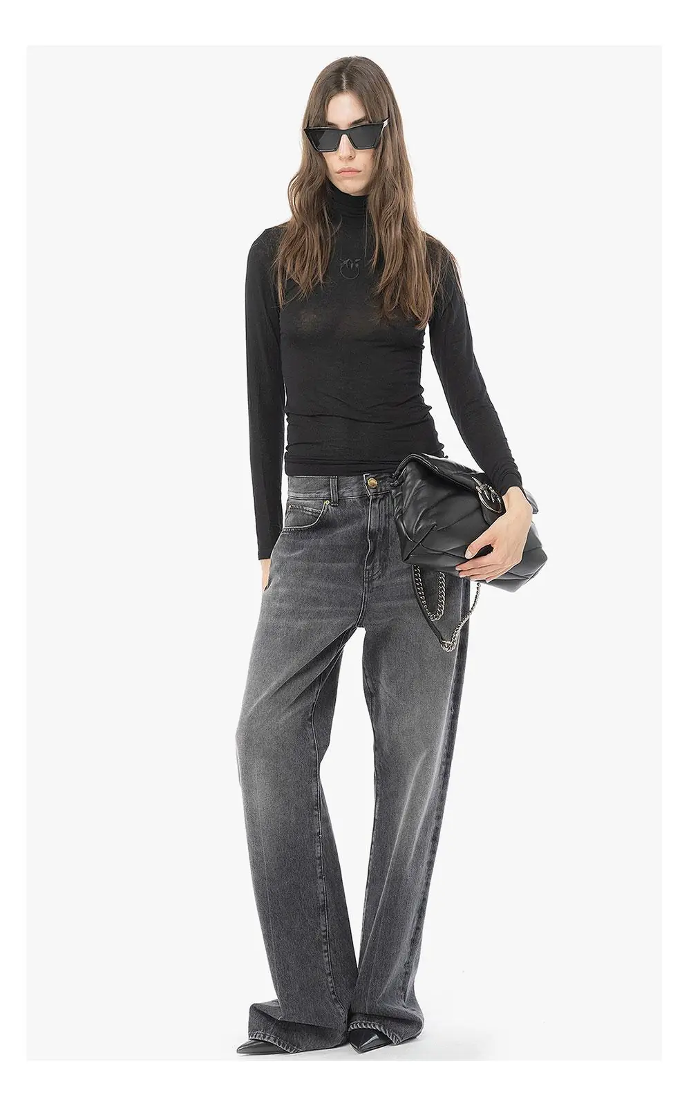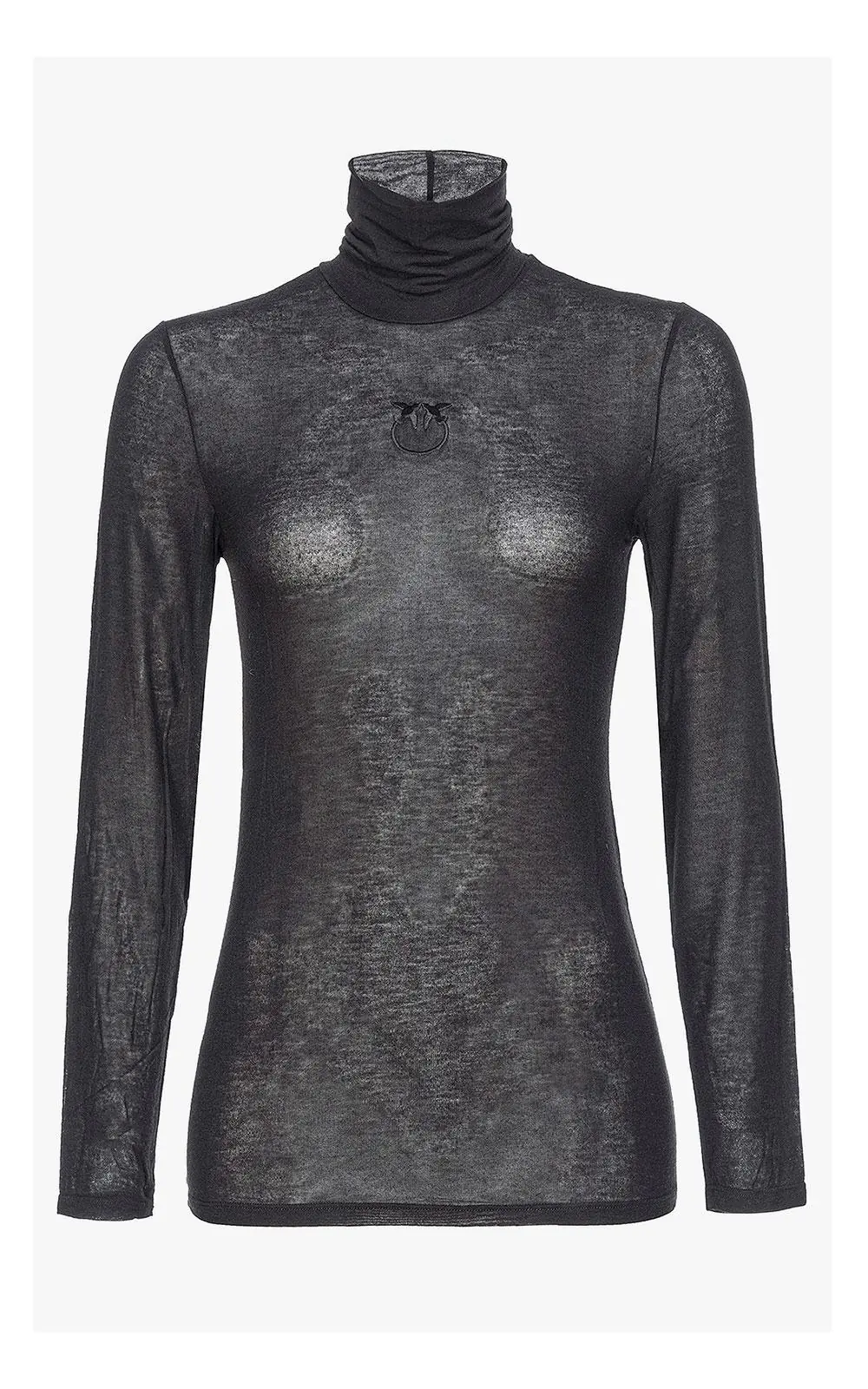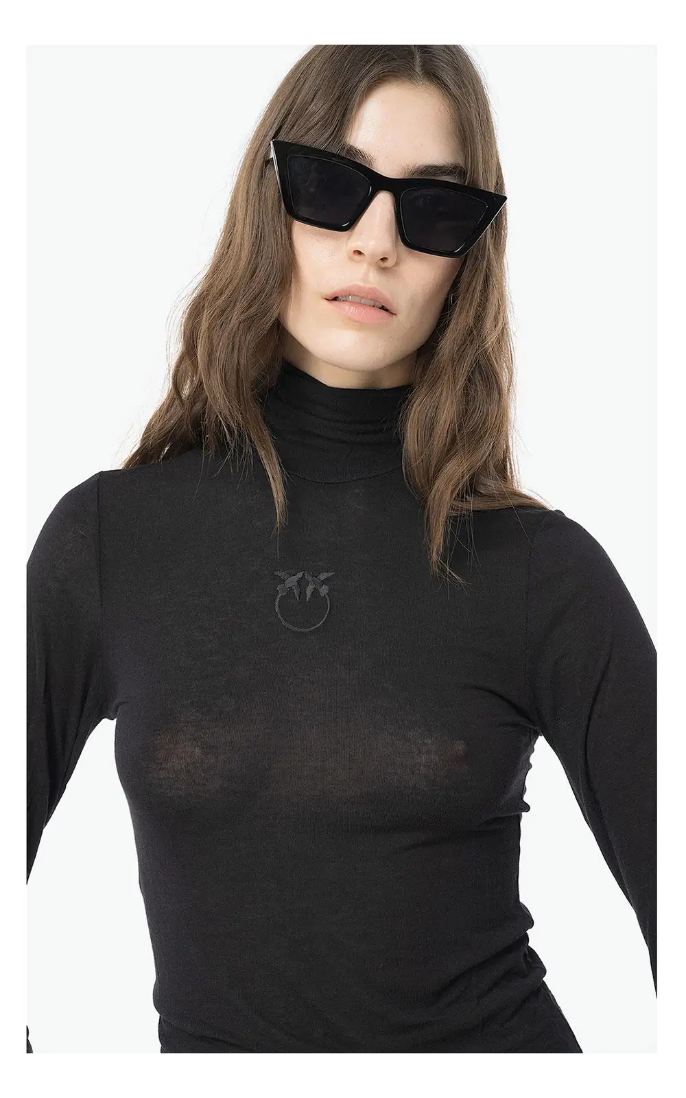 PINKO slim-fitting, long-sleeved turtleneck sweater in cashmere-blend jersey, with Love Birds logo embroidery on the front.