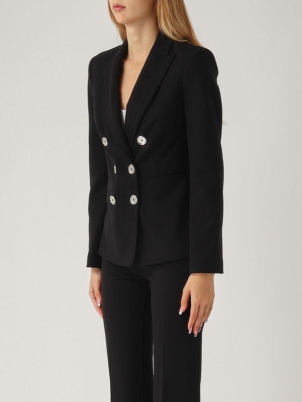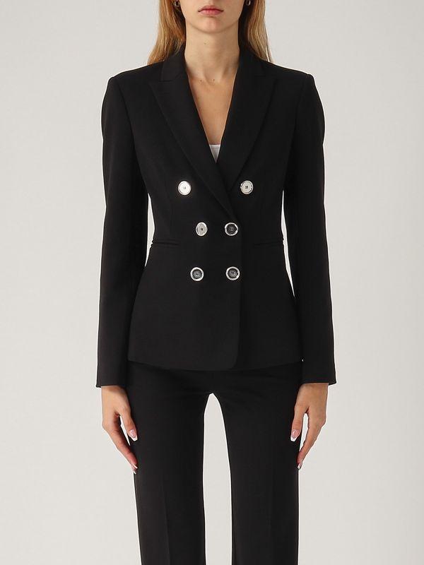 Made from technical fabric, the Alexia double-breasted blazer features a shaped silhouette, a lapel collar, welt pockets on the hips and a metal button closure.