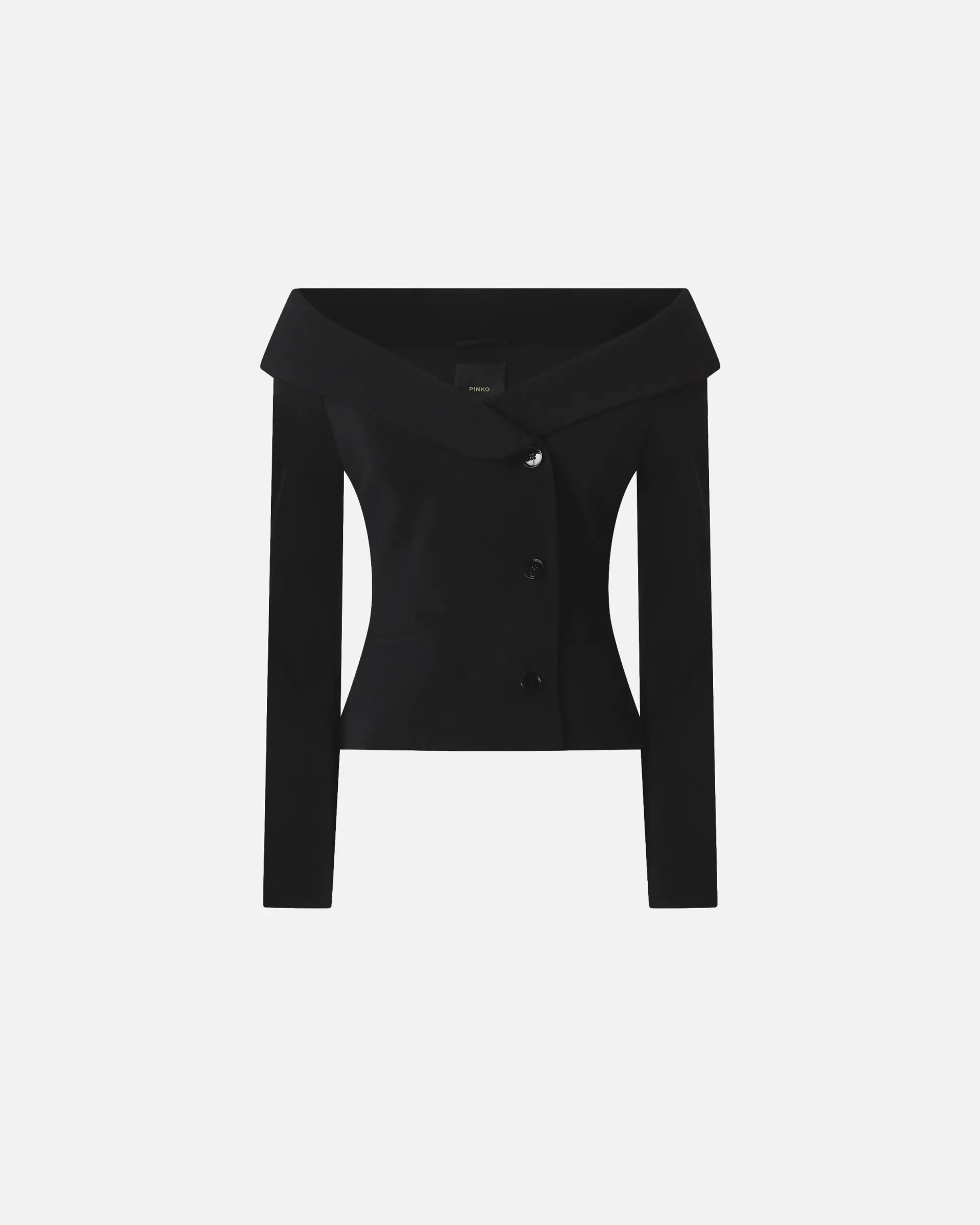 Slim-fitting, long-sleeved jacket in figure-flattering stretch crepe fabric. The off-centre button placket, buttoned cuffs and side welt pockets are a clear nod to the classic blazer's design, while the wide neckline that leaves the shoulders uncovered gives the item a decidedly feminine touch: the end result is structured yet classy in style, like only PINKO knows how.