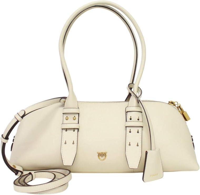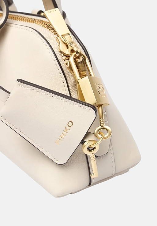Escape Bag Horizontal large bowling bag in soft leather. Ultra-versatile and refined, this bag has two long top handles and an adjustable and removable leather shoulder strap that allow you to carry it three ways: on the shoulder, crossbody or by hand. The two-way zip fastening on top is personalised with an original detail: a padlock decorated with the iconic Love Birds logo that can be opened and closed thanks to the key contained in the leather charm that completes the bag. The accessory features a cotton drill-lined interior with a slip pocket and slots for cards and documents. Activate your PINKO bag: verify the authenticity of your product and access a personalised experience by scanning the Love Birds embroidery on the back of the bag with your smartphone! - BOWLING HORIZONTAL BIG