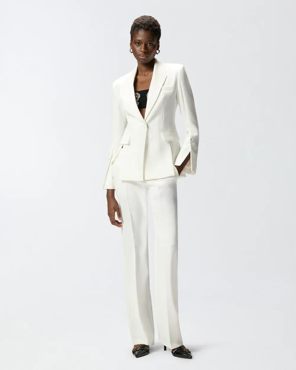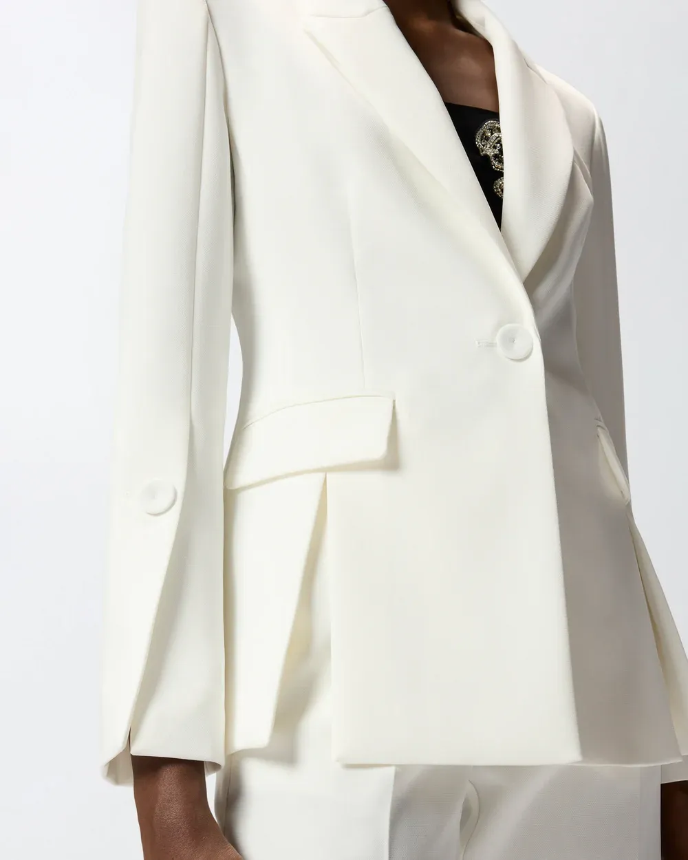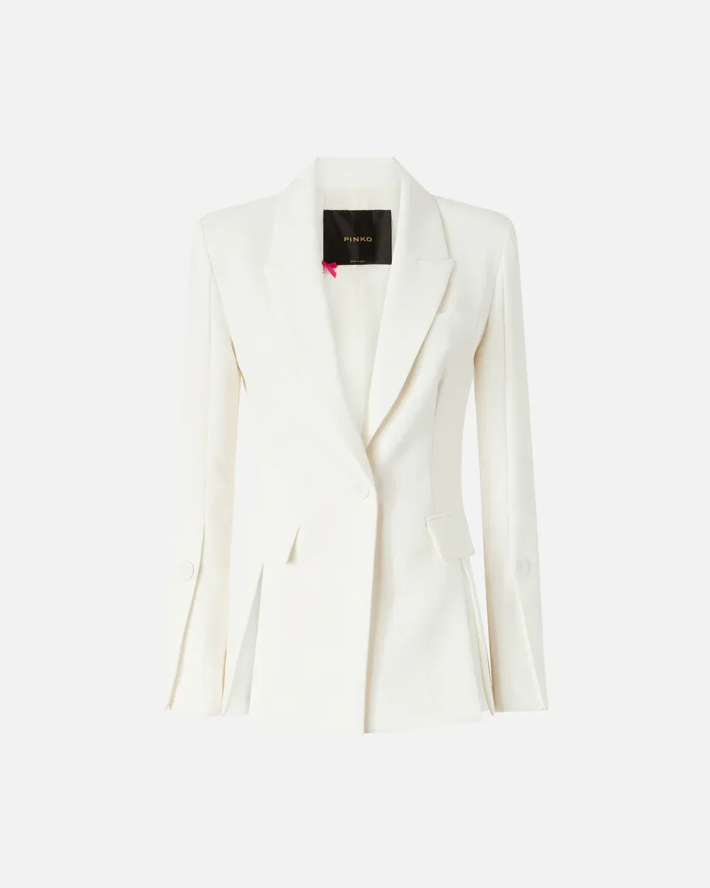 Jacket lined with lightweight georgette and made from technical canvas—a comfortable, breathable fabric that provides an irresistible combination of functionality and modern elegance. This garment, equipped with peak lapels, two front flap pockets and a small welt pocket on the chest, does not compromise on luxury, provided by the jewel button that characterizes the single-breasted fastening. The model also stands out for the refined slits under the pockets, on the back, and at the cuffs, where they are accompanied by a coated button. Wear this jacket with its matching trousers for a head-to-toe look suitable for formal occasions or pair with more casual garments for an outfit with an urban-chic edge. - CARCIOFO JACKET