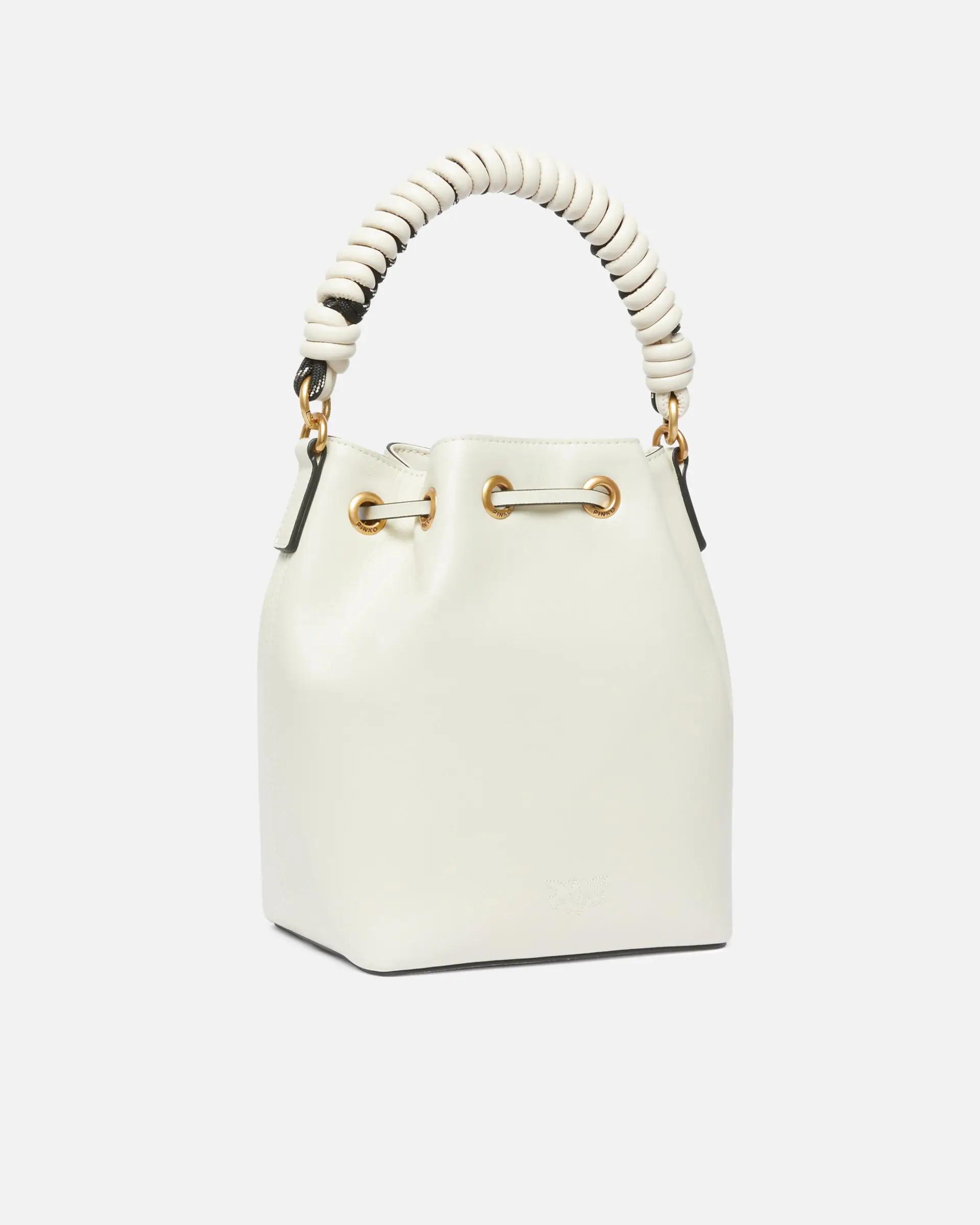 Small Cargo Bucket Bag in soft leather, complete with a cotton lining. Featuring a removable leather shoulder strap and braided handle so it can be carried by hand or crossbody, the bag is extremely versatile and practical. A distinctive accessory that is perfect for endless looks, this bag has a drawstring to adjust the fastening and an outer zip pocket to keep your essentials safe. The refined design is complemented by the Love Birds logo, which embodies the inimitable style of the brand. Activate your PINKO bag: verify the authenticity of your product and access a personalised experience by scanning the Love Birds embroidery on the back of the bag with your smartphone!