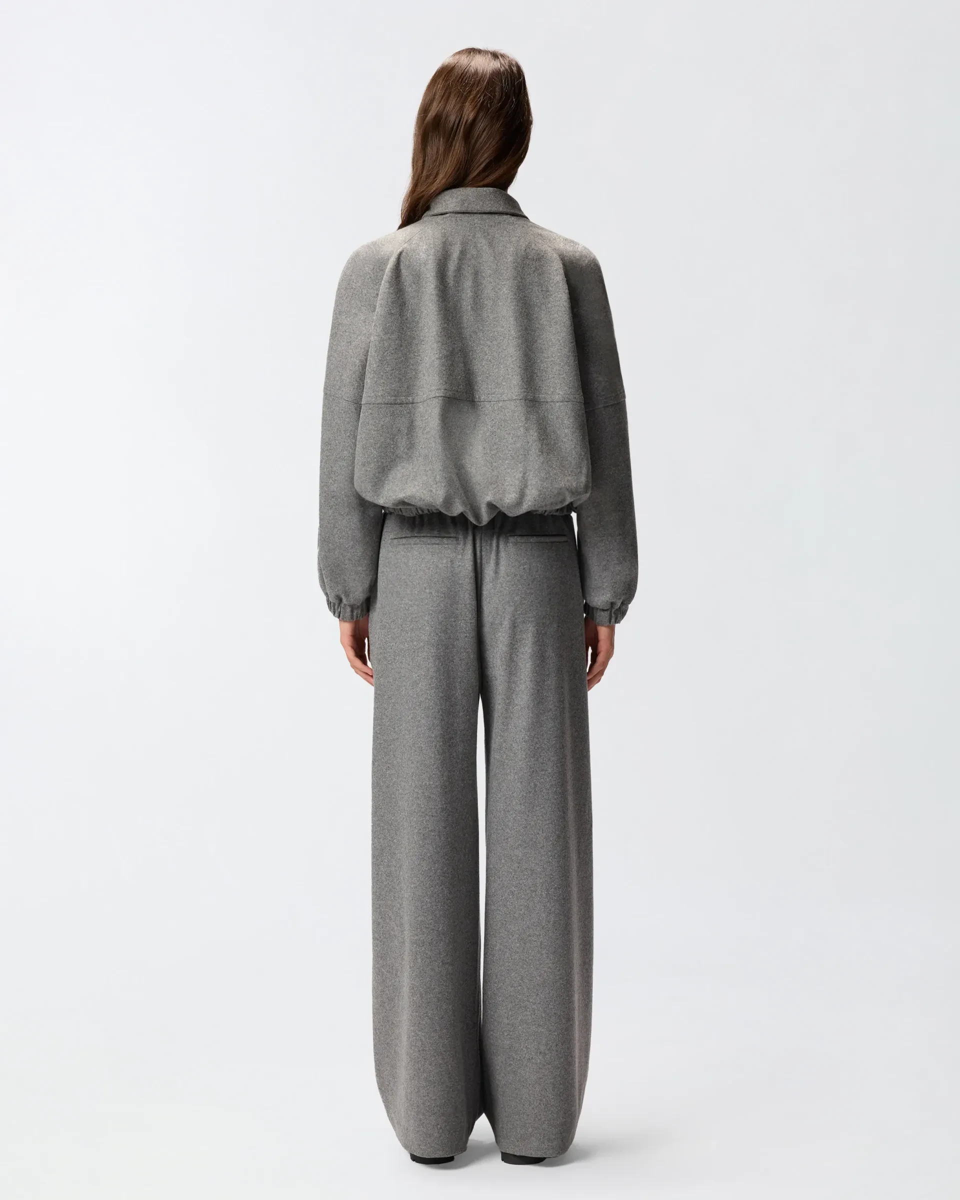 Regular-fit bomber jacket made of yarn-dyed wool-blend jersey flannel, a perfect fabric for combining tailoring and comfort. The garment features a wrap-around stand-up collar, a functional front zip closure and comfortable side pockets, and is made even more practical by the elasticated hem and cuffs. Embrace sporty style with this practical and versatile style, to be worn in your free time or during more casual occasions.