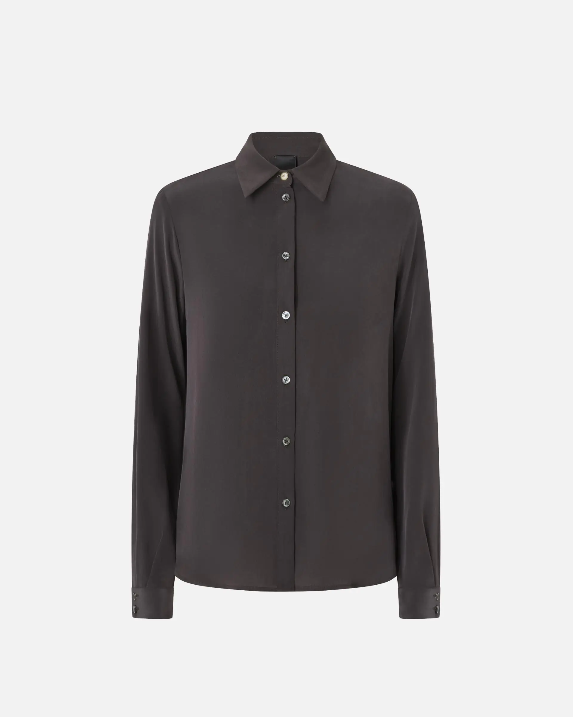 Classic shirt with small collar, long sleeves completed by buttoned cuffs and a refined rear yoke with inverted pleat. The garment is made from pure silk crepe de Chine with a sand wash treatment, which attenuates the lustre of the fabric, giving it a slightly worn look. The first button of the fastening is made from metal and is decorated with a star. Pair this shirt with jeans to give your everyday look a feminine and original upgrade that won't go unnoticed.