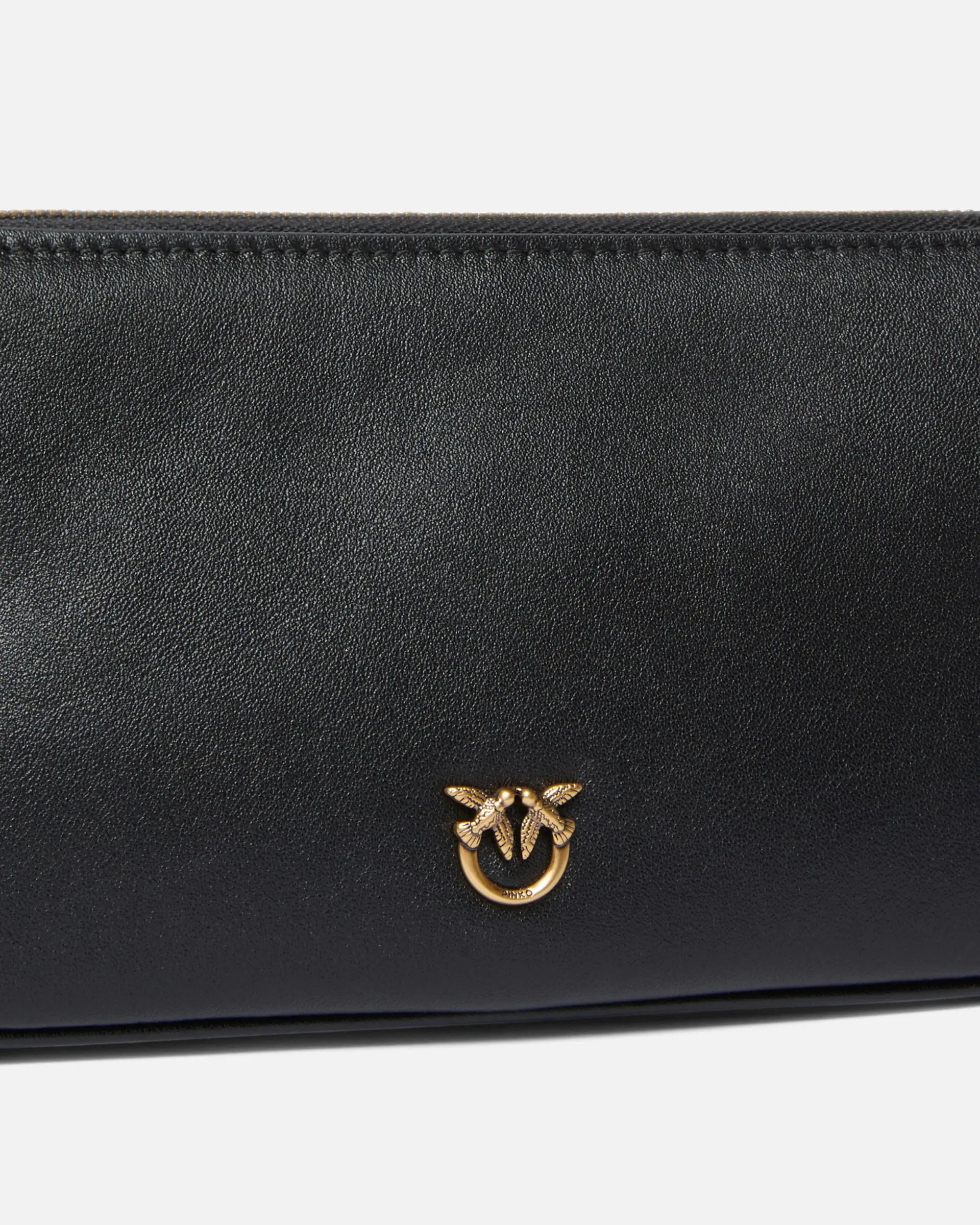 Mini Half Moon Baguette bag with a distinctive narrow and elongated rectangular shape, made from soft leather and equipped with a main zip fastening to keep your essentials safe. Featuring an adjustable leather shoulder strap, the bag is extremely versatile and practical for everyday life. The refined design is complemented by the Love Birds logo, which embodies the inimitable style of the brand. Activate your PINKO bag: verify the authenticity of your product and access a personalised experience by scanning the Love Birds embroidery on the back of the bag with your smartphone!
