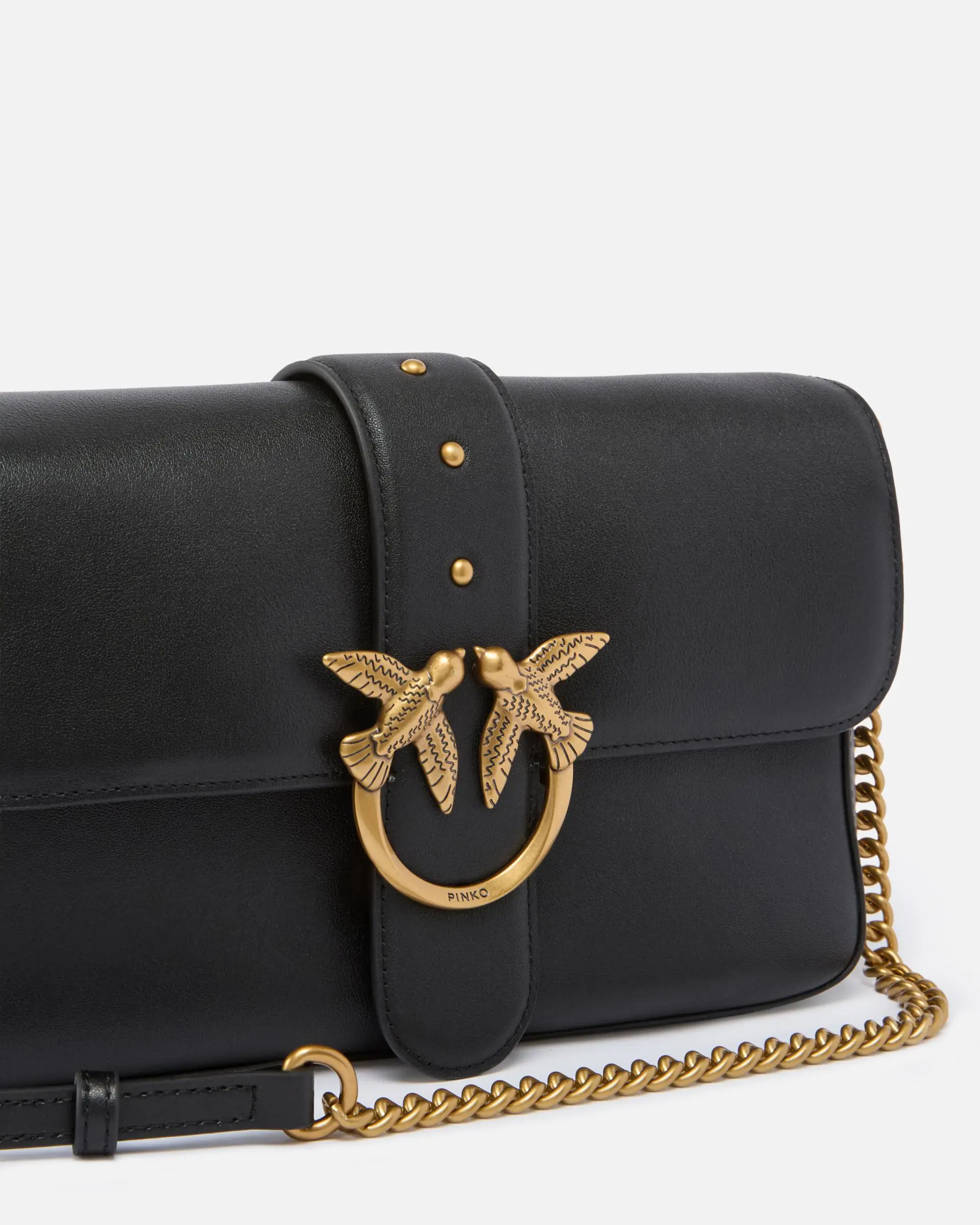 Love Bag One Slouchy medium handbag in soft leather. This item features two shoulder straps: an ultra-versatile chain one with adjustable leather shoulder pad and a more original, adjustable leather one with decorative charm and special shoulder pad adorned with metal rings. The flap fastening is accompanied by small metal studs and a buckle featuring the Love Birds Diamond Cut logo. The accessory features a cotton drill-lined interior and a zipped slip pocket. Activate your PINKO bag: verify the authenticity of your product and access a personalised experience by scanning the Love Birds embroidery on the back of the bag with your smartphone!