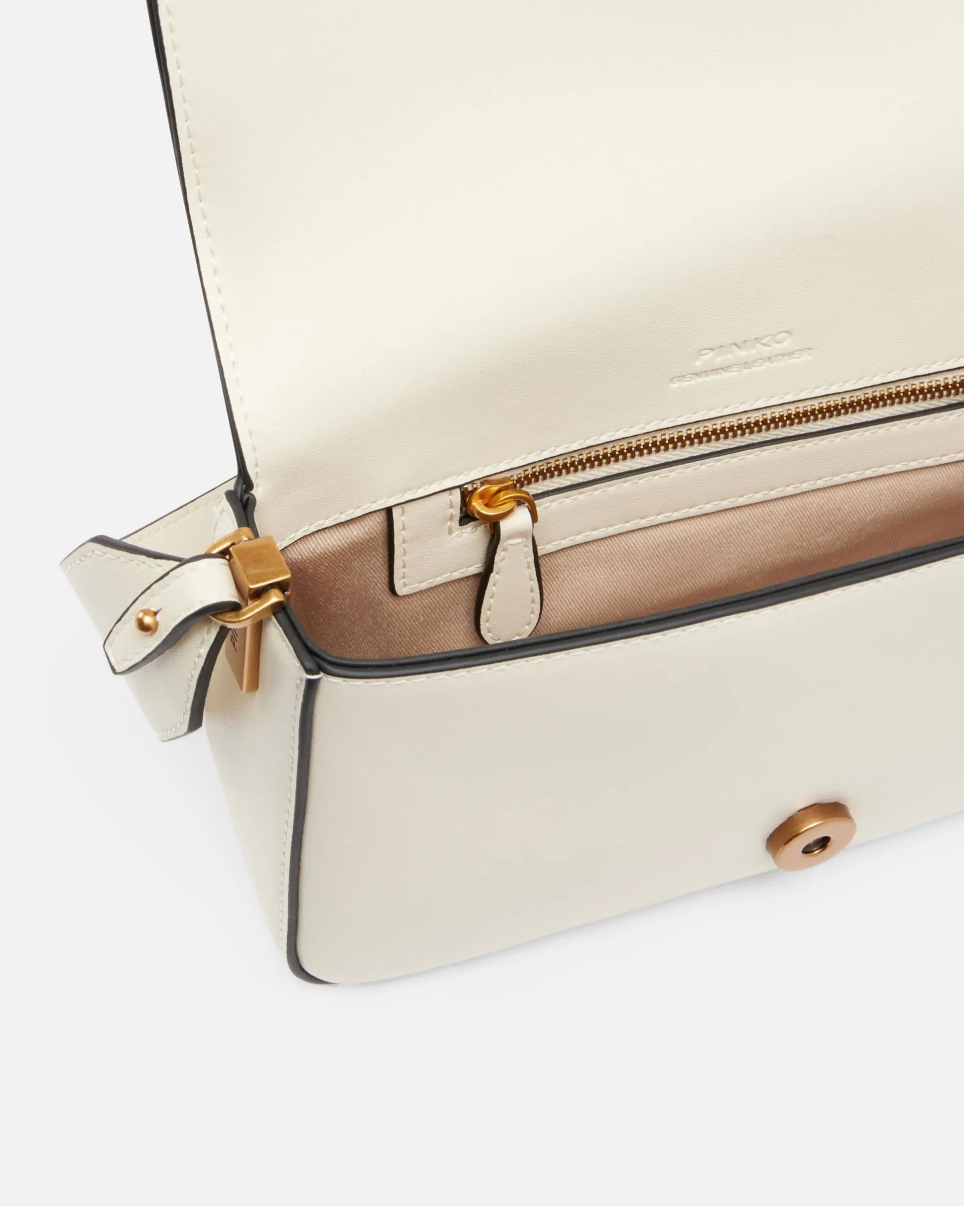 Small shoulder bag in Mini Love Bag Slouchy leather, which is characterized by a soft, unstructured shape, almost as if it were a small travel bag. The handbag is complete with a leather shoulder strap, adjustable with a buckle, to carry the bag on the shoulder and a chain shoulder strap with leather shoulder strap, to customize the bag according to need. For an extra touch of style, especially on special occasions, you can also carry the Mini bag by hand. The flap closure is completed by a pod and buckle with the iconic Love Birds Diamond Cut bird logo, in antique gold galvanic metal. The inside of the handbag is lined in cotton drill fabric and also includes a leather wall pocket. The soft-shaped Mini Love Bag is the most contemporary update of the iconic PINKO bag, and completes any look with which you wear it with a touch of style. Activate your PINKO bag: check the authenticity of your product and access the personalized experience by bringing your smartphone close to the Love Birds embroidery on the back of the bag! - LOVE ONE MINI SLOUCHY FL
