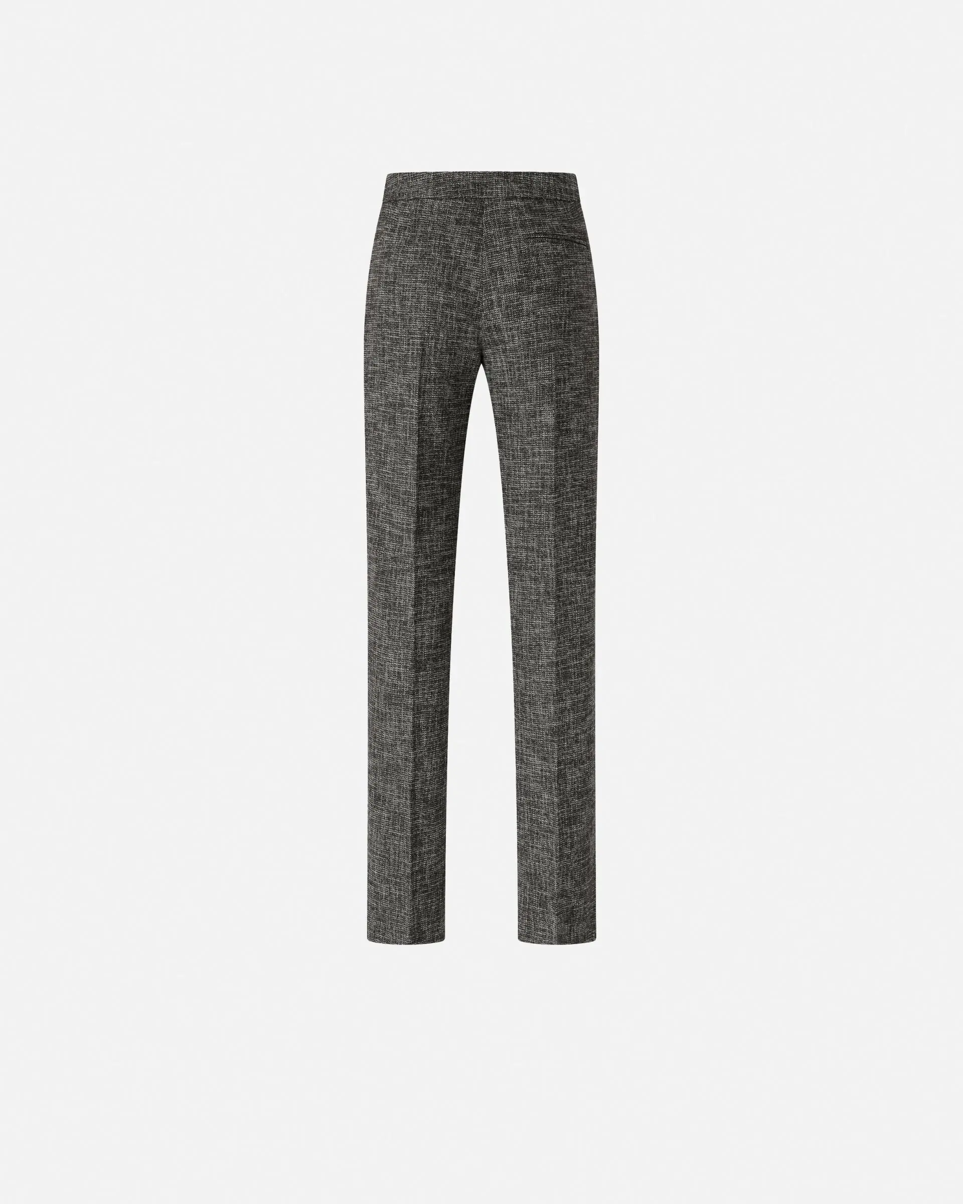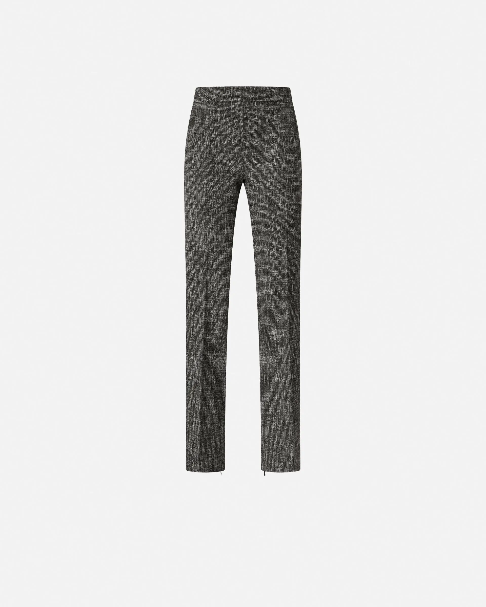 Skinny trousers with a high waist and a rear welt pocket. This garment is made from flannel with a pleasant and warm hand and features a classic-inspired tweed design. The legs are finished with refined tailoring-inspired pleat on the front and back, and are equipped with an invisible zip on the inside to allow you to adjust the fit. Pair these trousers with a blazer in the same fabric for a suit or with a shirt for a slightly but not overly formal look.
