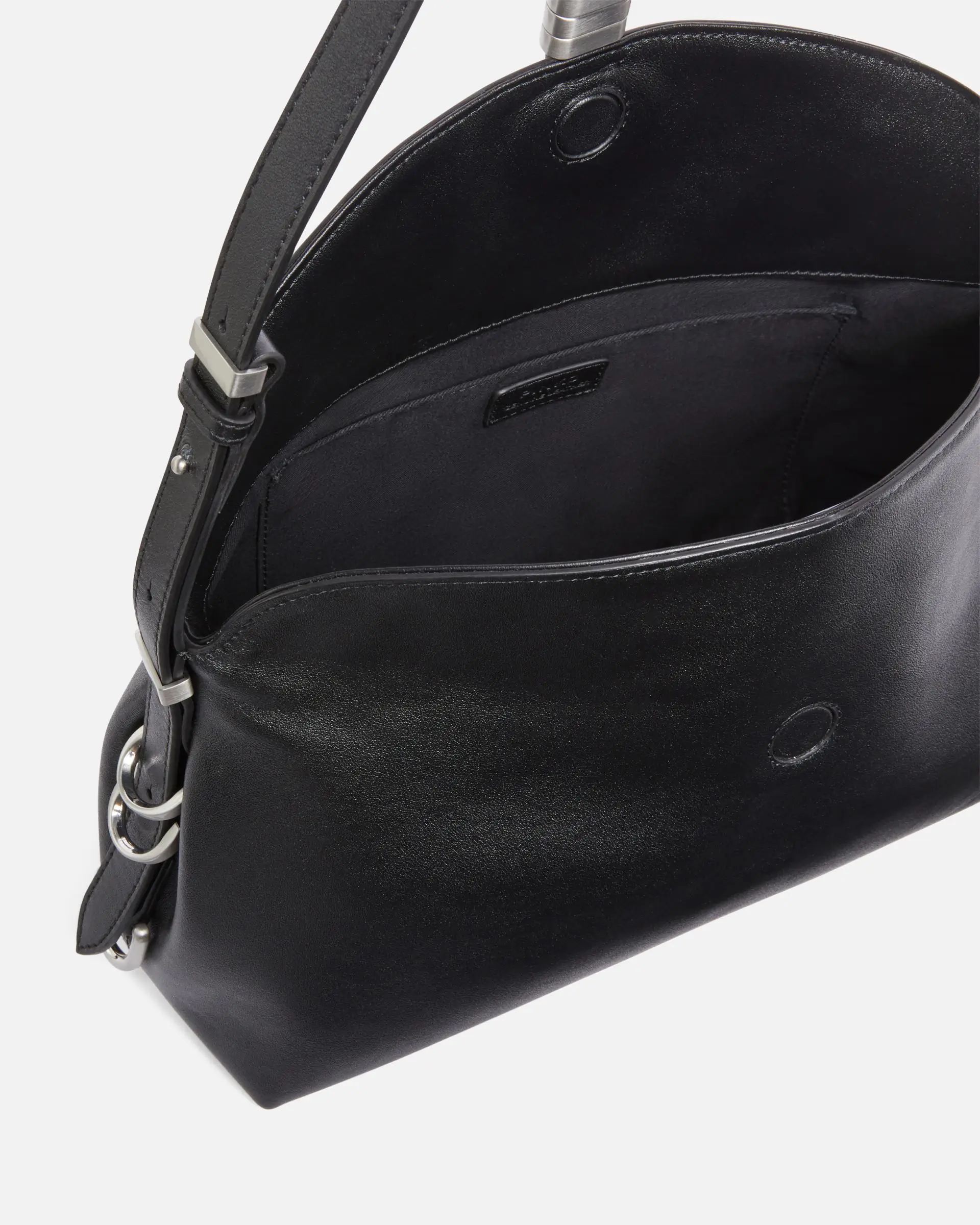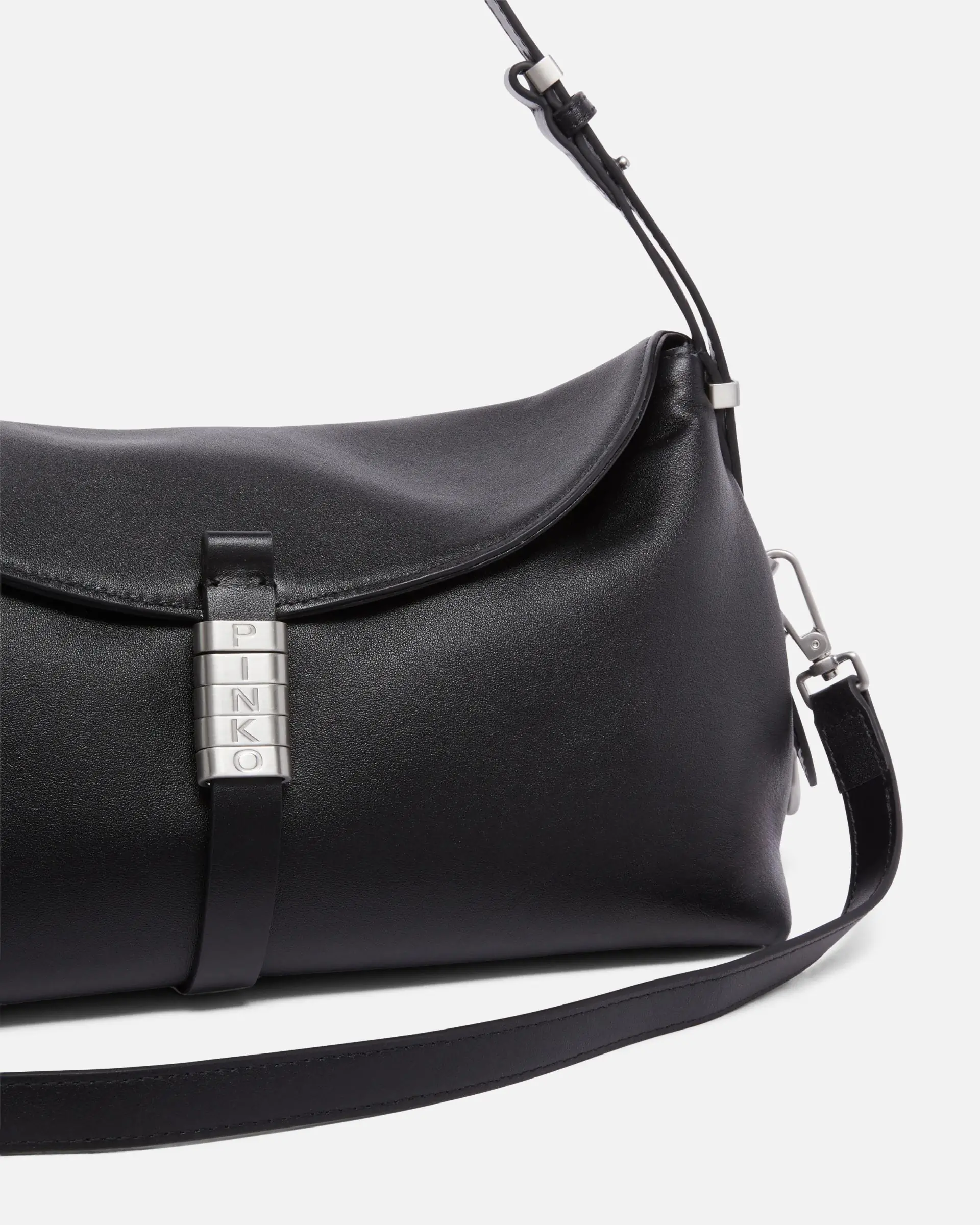 Medium Classic Saddle Bag Baguette shoulder bag featuring a distinctive narrow and elongated rectangular shape, crafted from soft leather and equipped with a cotton lining and inner wall pocket. The flap fastening is complemented by matte silver-plated metal belt loops with the iconic PINKO lettering logo, for a fine touch. Featuring an adjustable leather shoulder strap and handle so it can be carried by hand or crossbody, the bag is extremely versatile and practical. Activate your PINKO bag: verify the authenticity of your product and access a personalised experience by scanning the Love Birds embroidery on the back of the bag with your smartphone!