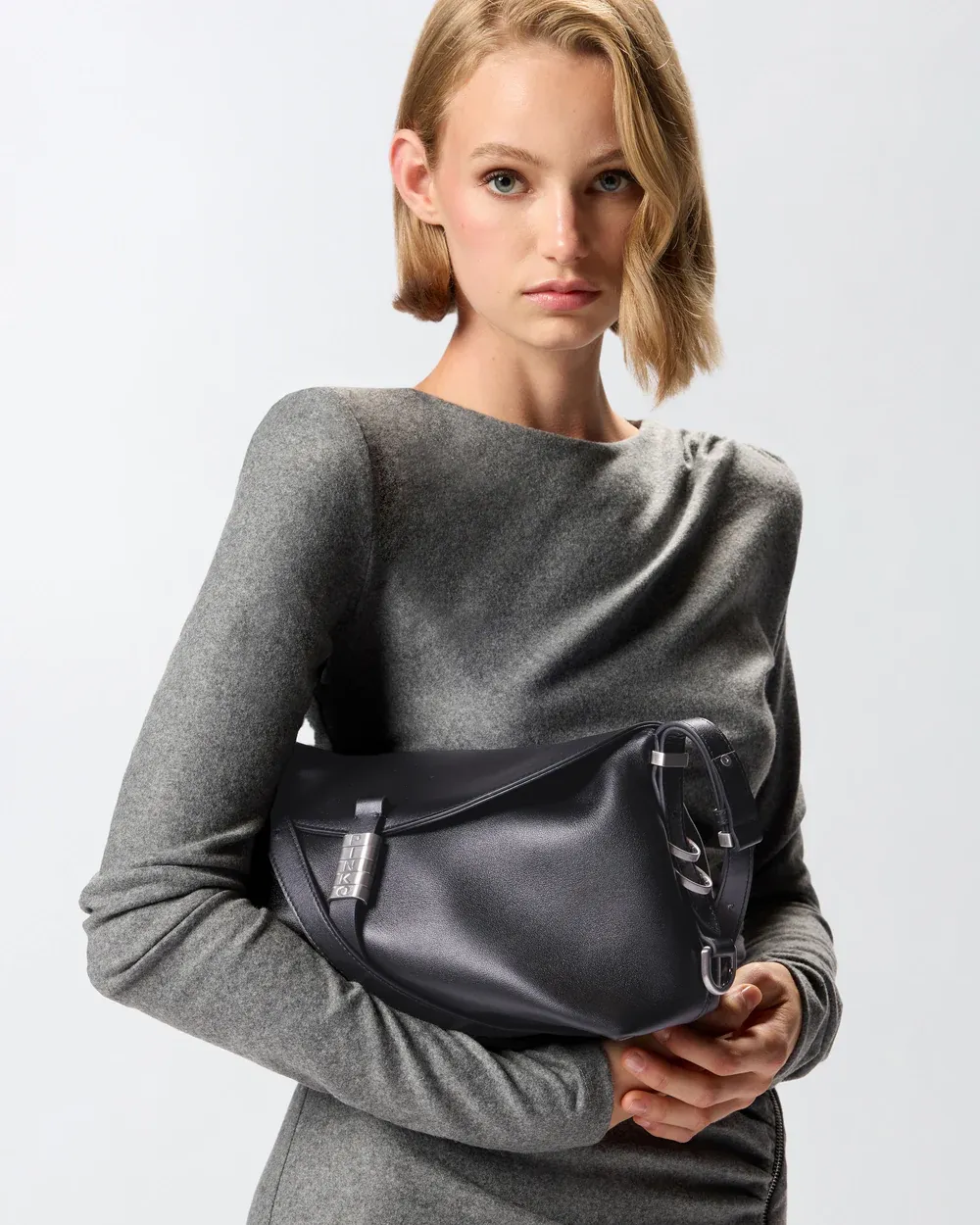 Medium Classic Saddle Bag shoulder bag featuring a distinctive narrow and elongated rectangular shape, crafted from soft leather and equipped with a cotton lining and inner wall pocket. The flap fastening is complemented by matte silver-plated metal belt loops with the iconic PINKO lettering logo, for a fine touch. Featuring an adjustable leather shoulder strap and handle so it can be carried by hand or crossbody, the bag is extremely versatile and practical. Activate your PINKO bag: verify the authenticity of your product and access a personalised experience by scanning the Love Birds embroidery on the back of the bag with your smartphone! - SADDLE CLASSIC