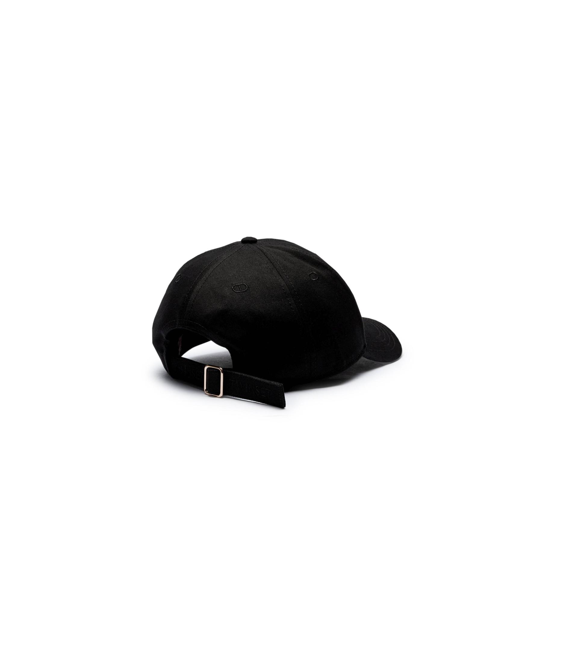 Cotton gabardine baseball cap with Oval T logo embroidery and lettering logo on the front, stitched visor, adjuster on the back.