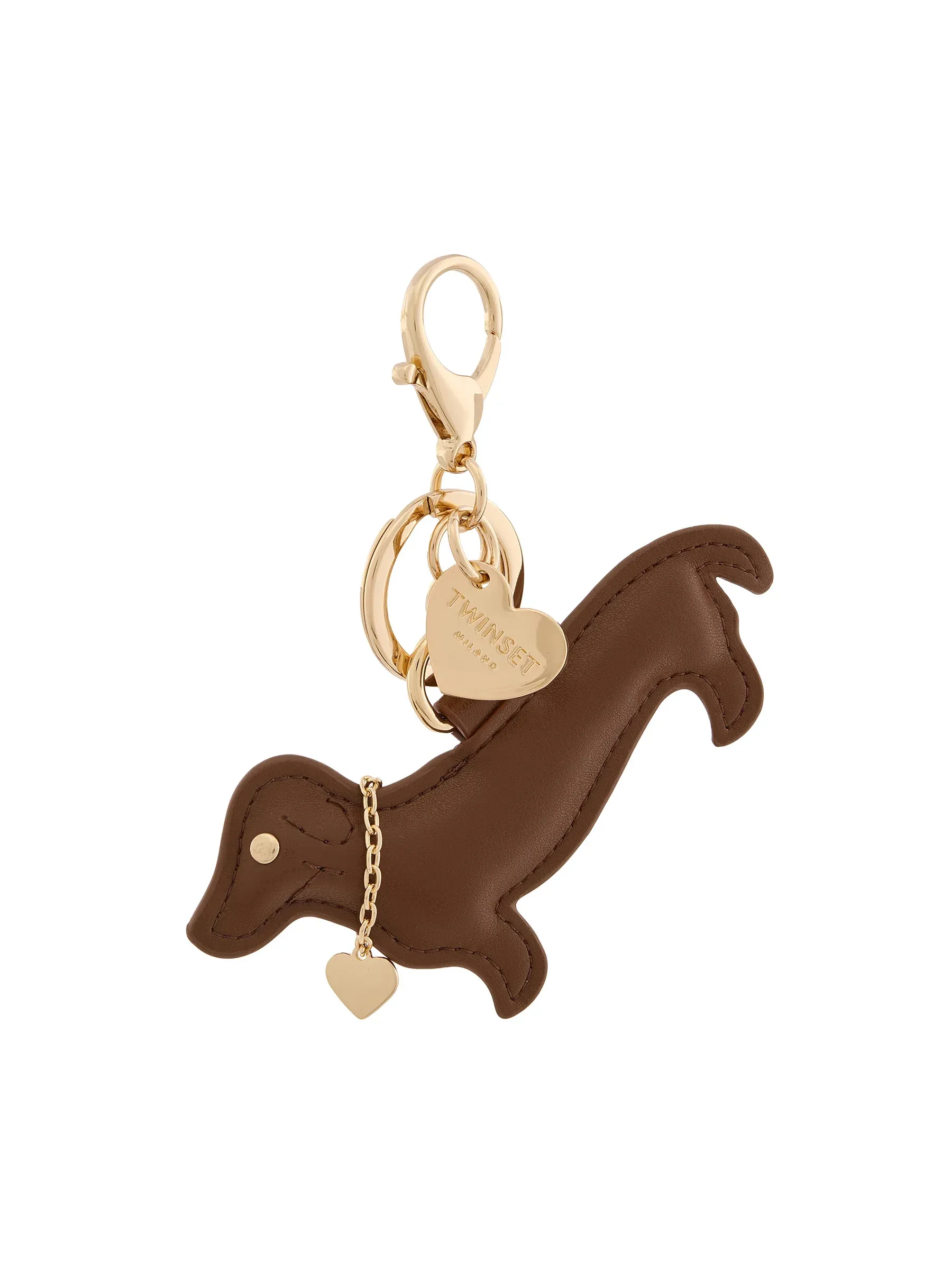 Charming and full of personality, this dachshund-shaped keychain is crafted in smooth faux leather for a playful yet polished touch. A tiny heart charm on a delicate gold chain collar adds a luxe detail to its whimsical silhouette. A stylish companion for your keys or bag, perfect for dog lovers with flair.