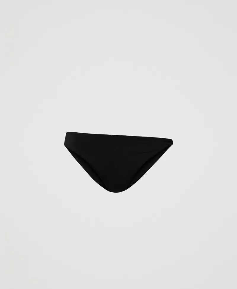 Solid colour asymmetrical bikini briefs with Oval T on the side. Lined.