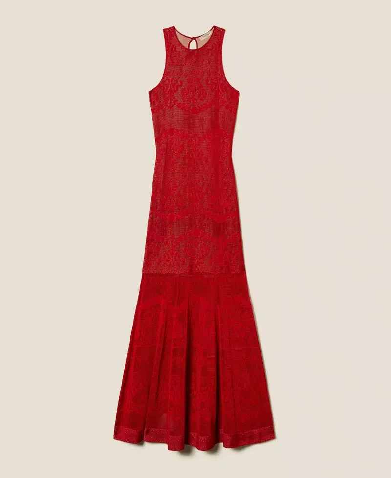 This dress has a fitted top and a loose fitting skirt.