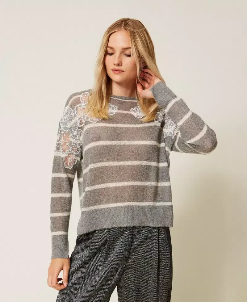 Grey Melange/Snow White Stripe