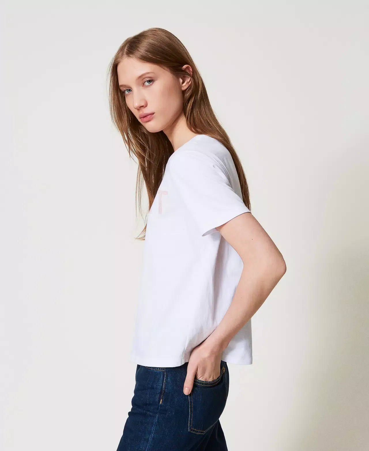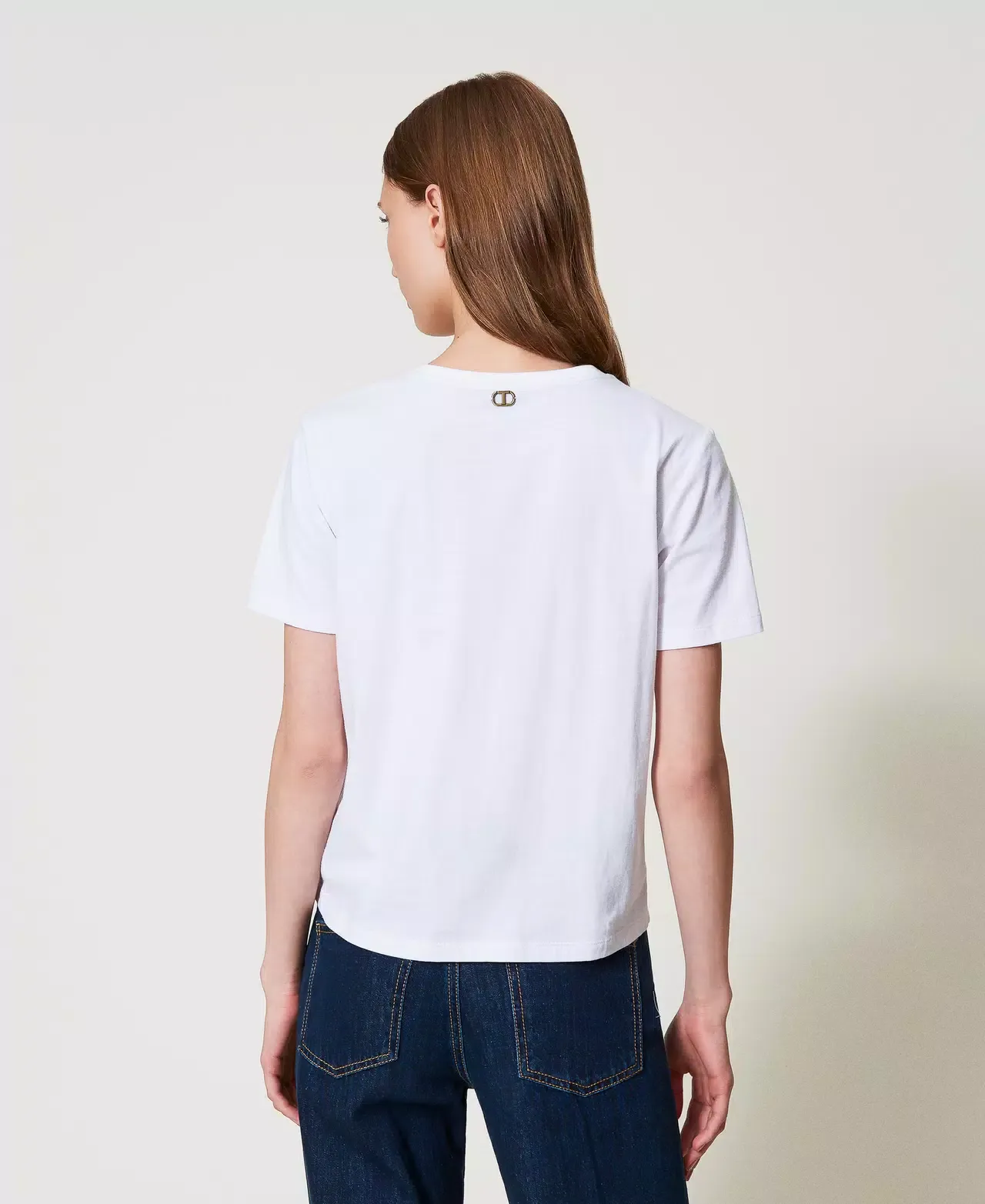 Cotton jersey t-shirt with thread-embroidered Oval T logo, a round neck, short sleeves and a straight fit.