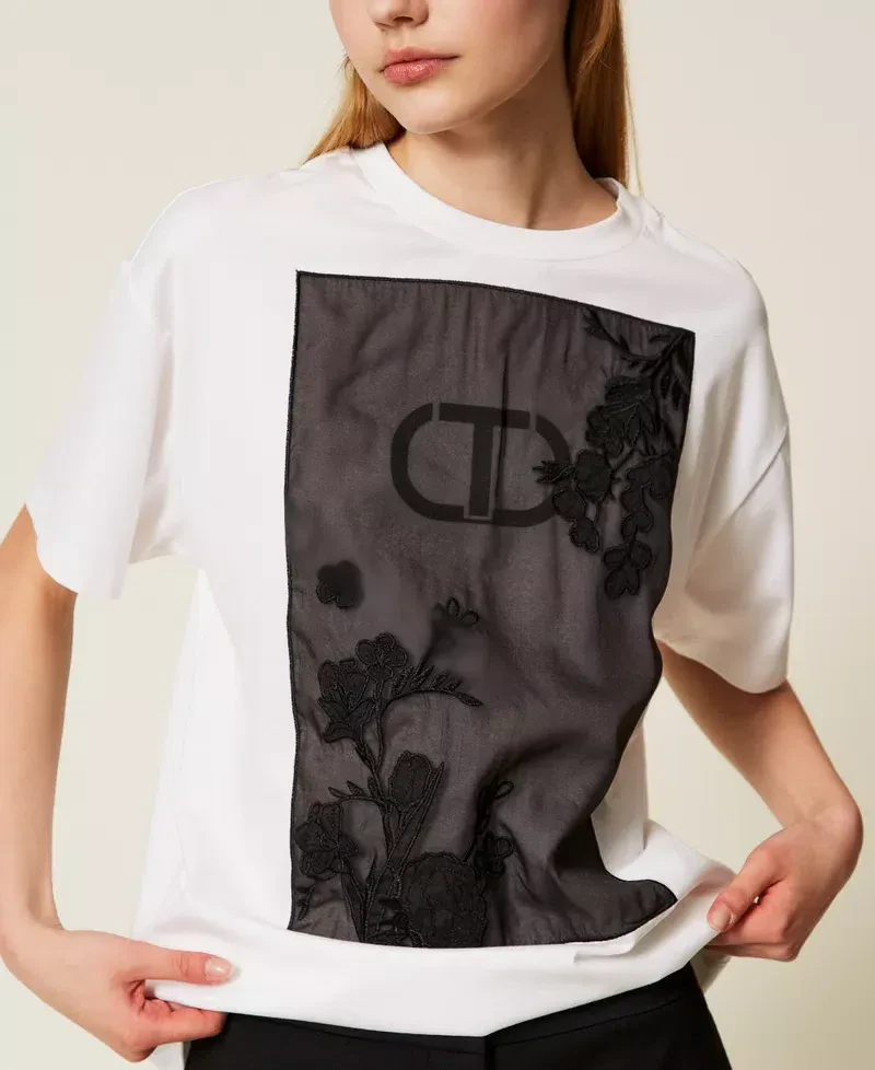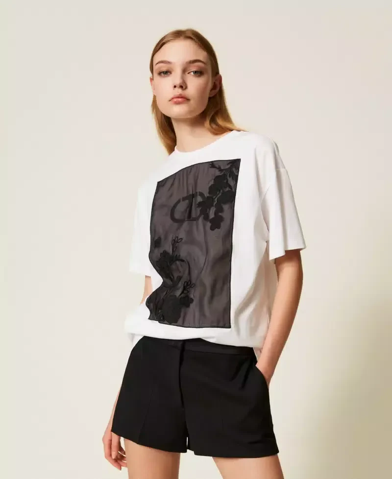 100% cotton. Material 2: 95% cotton 5% elastane. Material 3: 100% polyester. Material 4: 100% polyester
