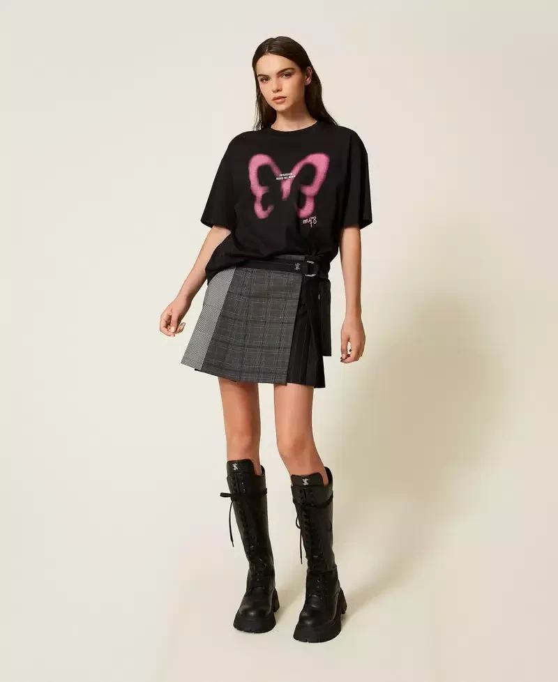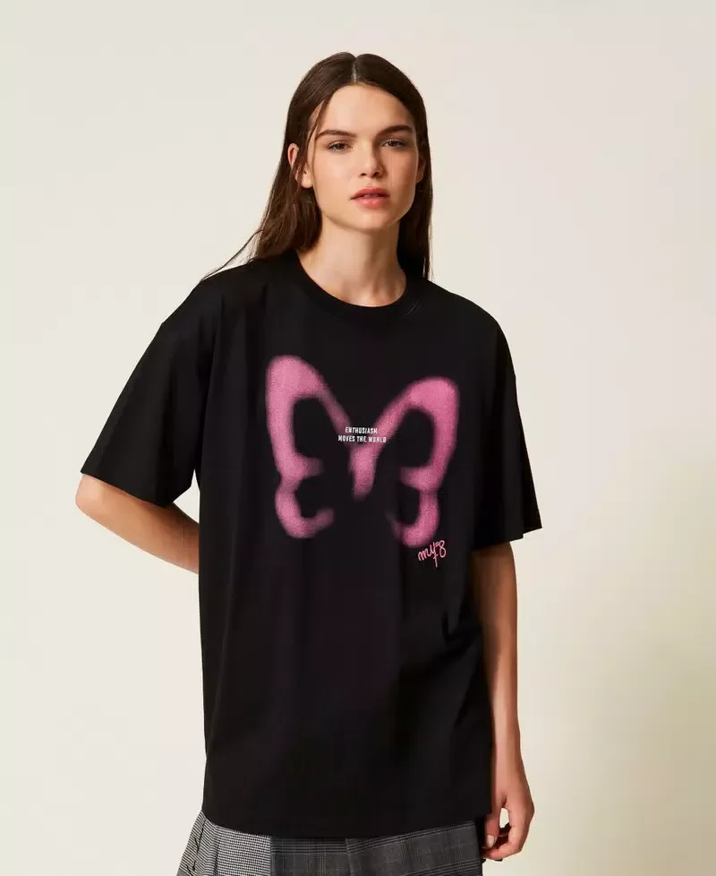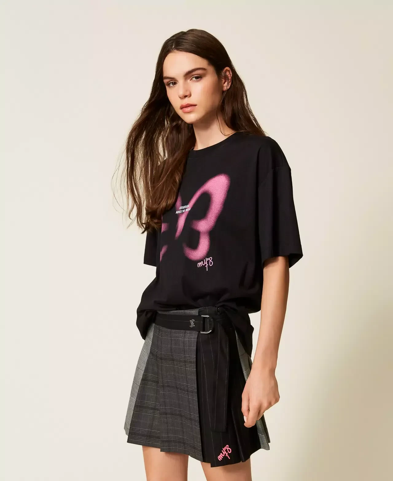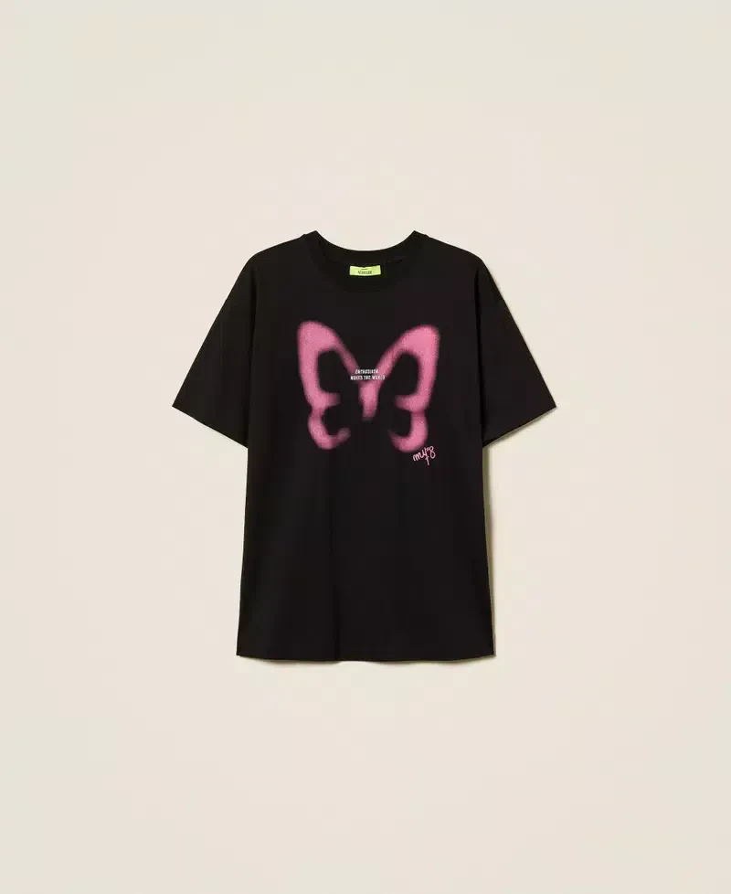 T-shirt designed by artist Myfo for the Actitude collection, made from mercerised cotton jersey with claim print. Oversized.