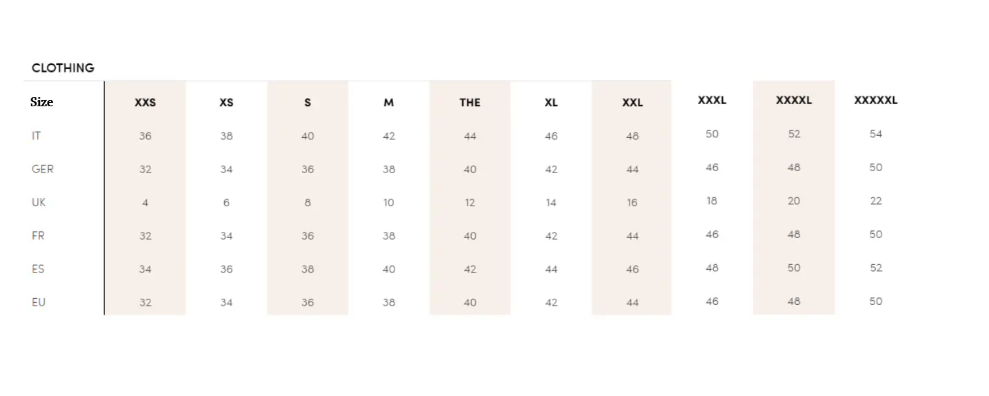 Size chartProduct description: