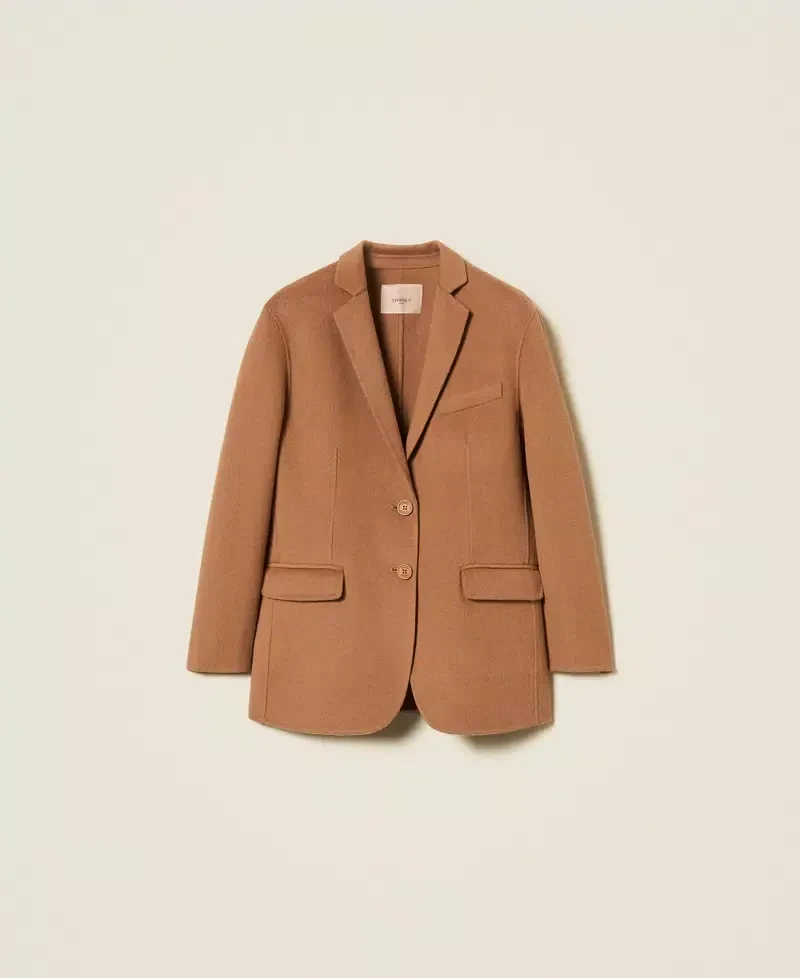 50% polyester 50% wool. Material 2: 100% polyester