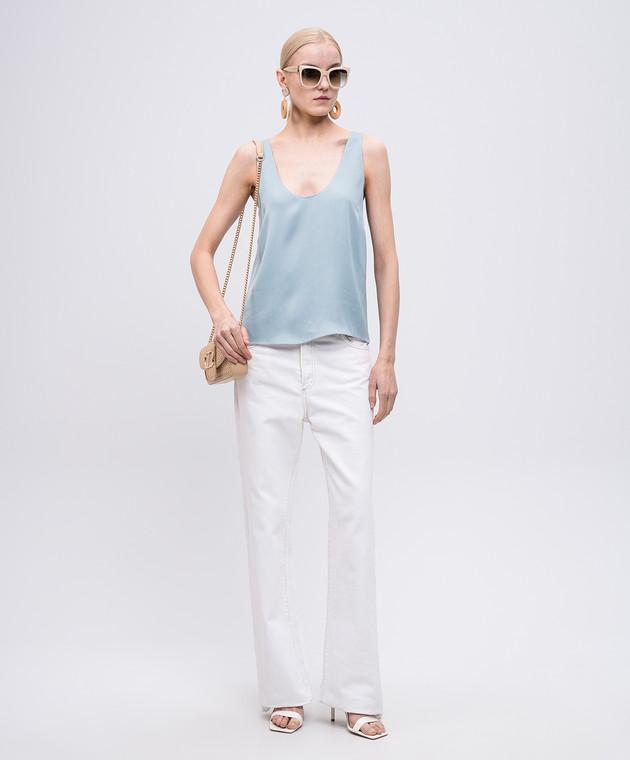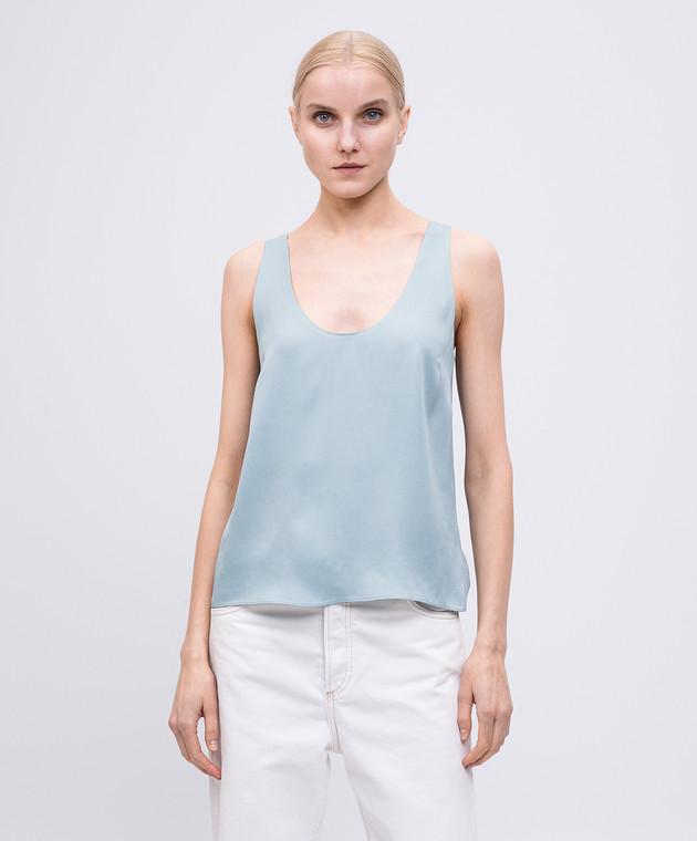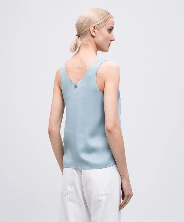 Shiny viscose satin top with round neckline, Oval T logo plate on the back, straight fit. Also perfect under a jacket.