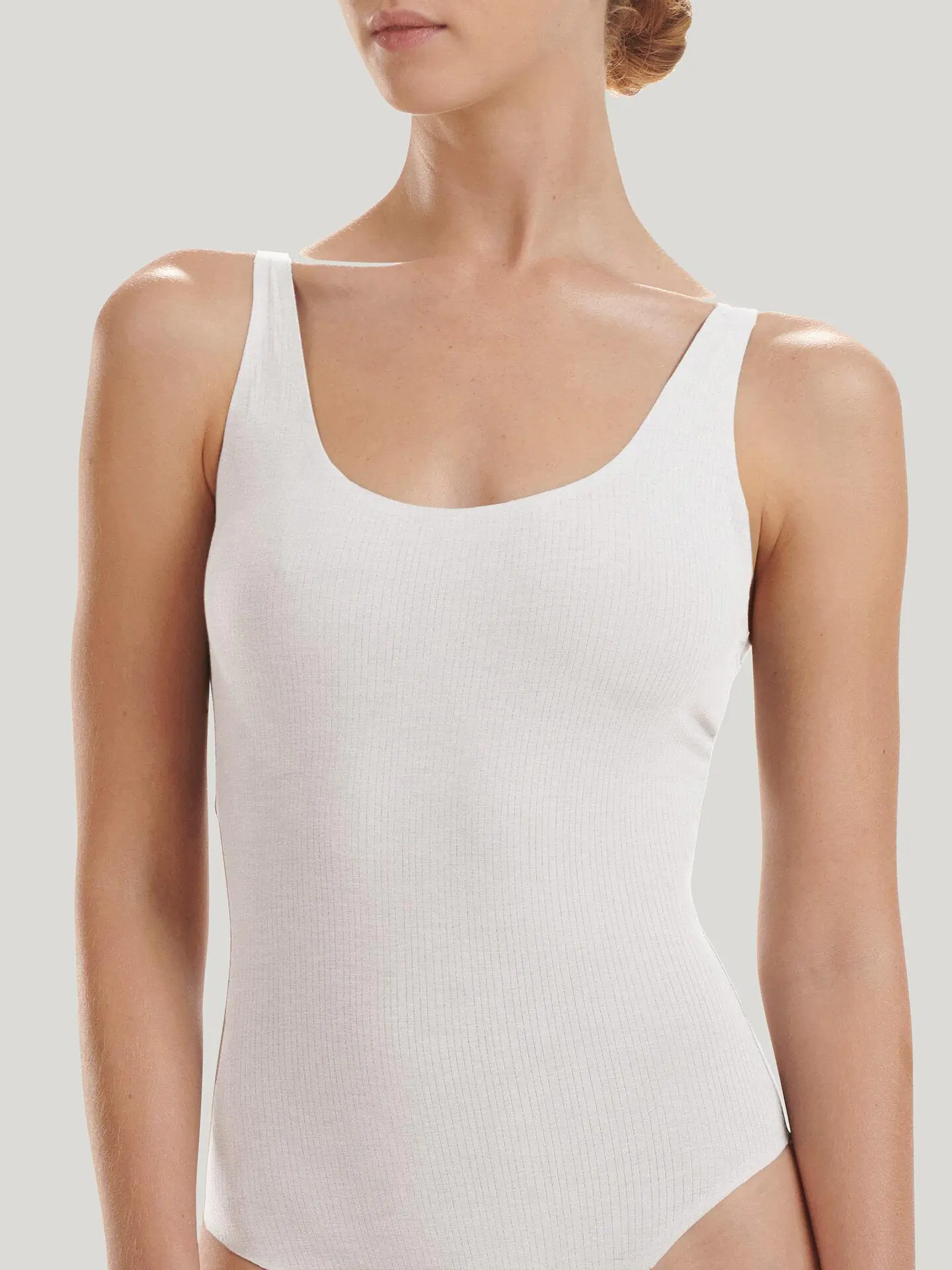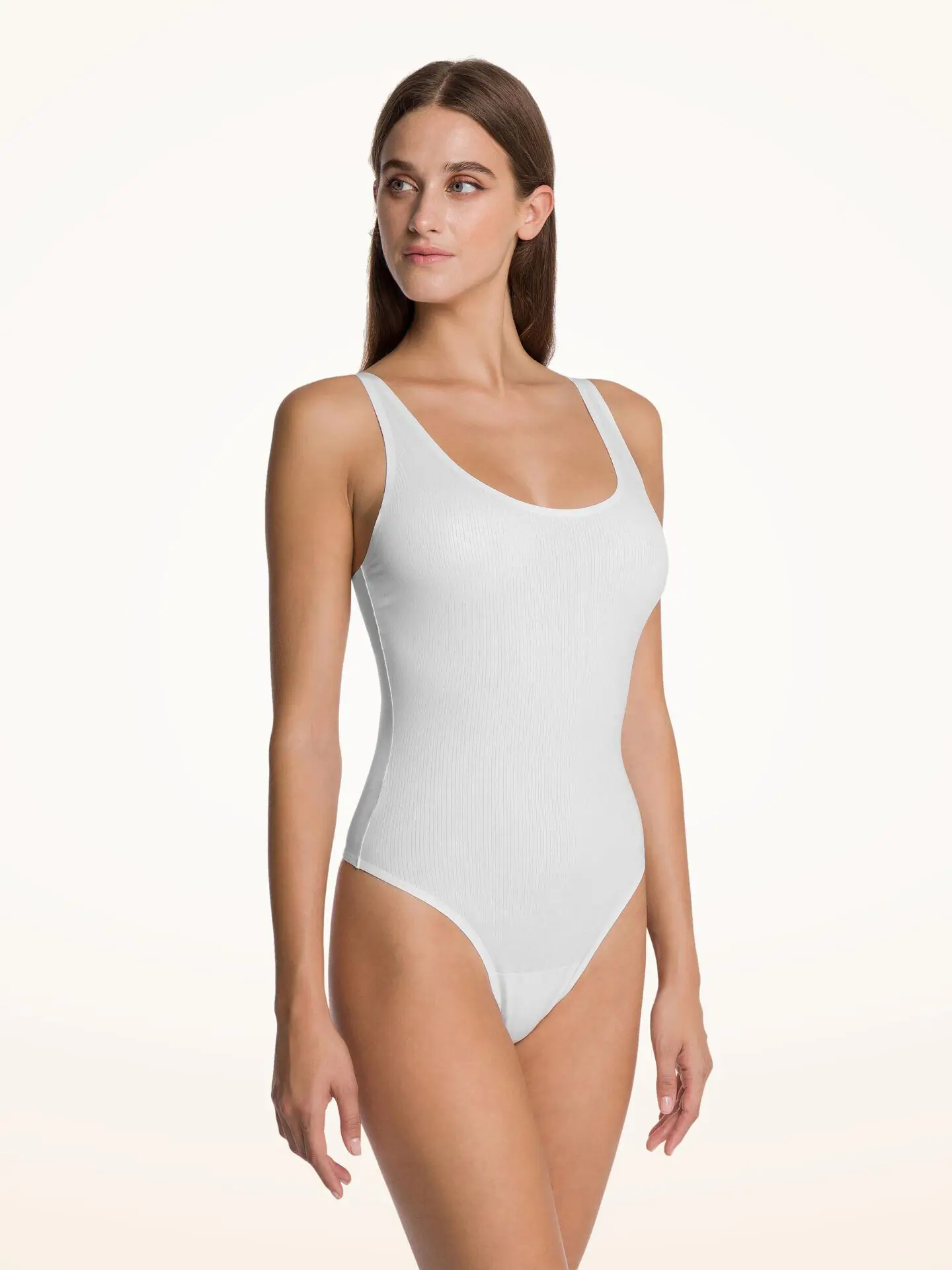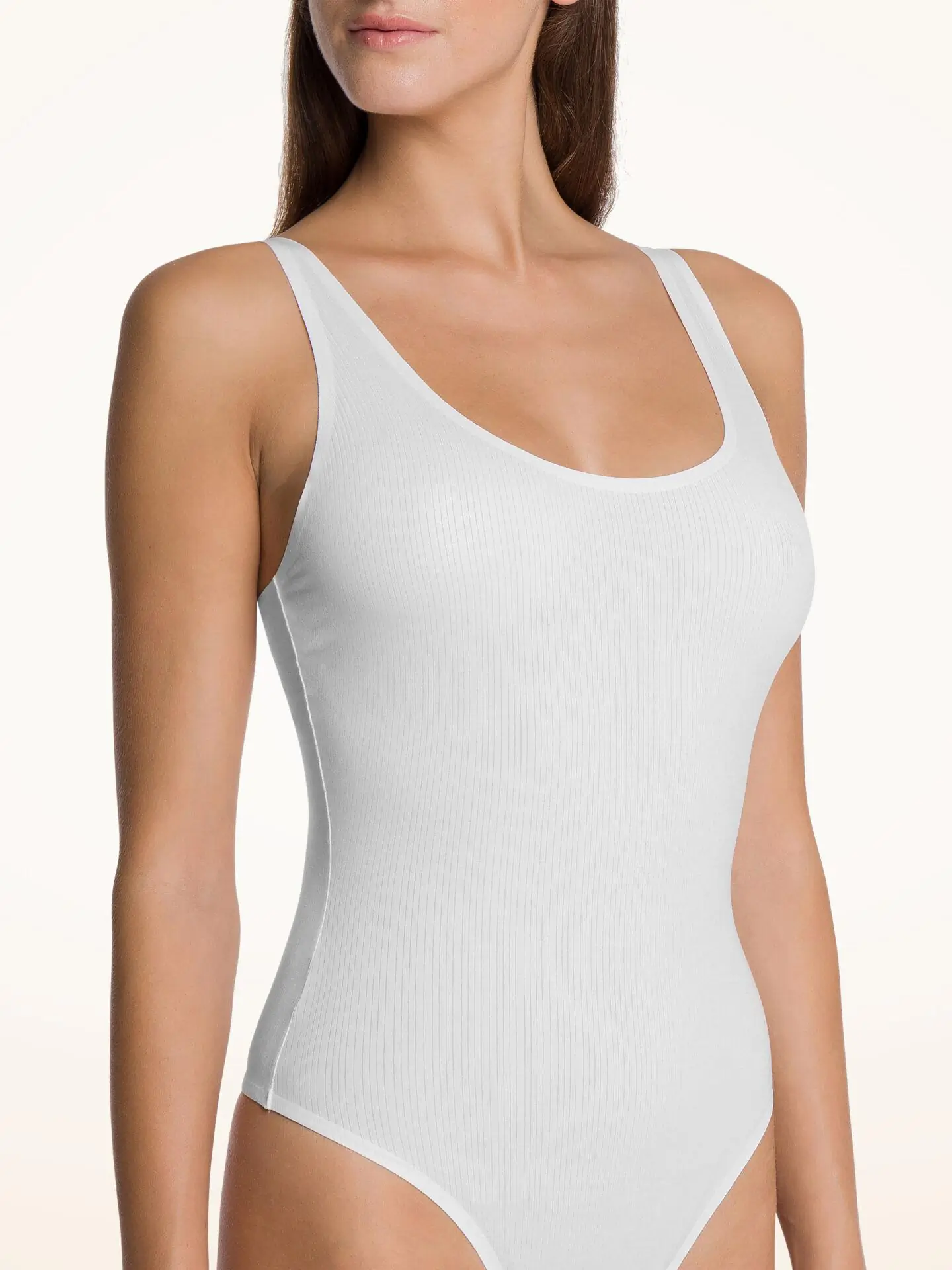 An innovative natural ribbed fabrication that is soft and feels good against the skin. Offered in a neutral color palette, modern shapes and features embossed logo elastics. A classic bodysuit with bonded leg lines for a modern and clean finish