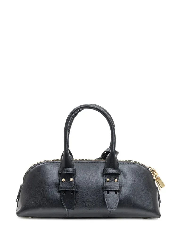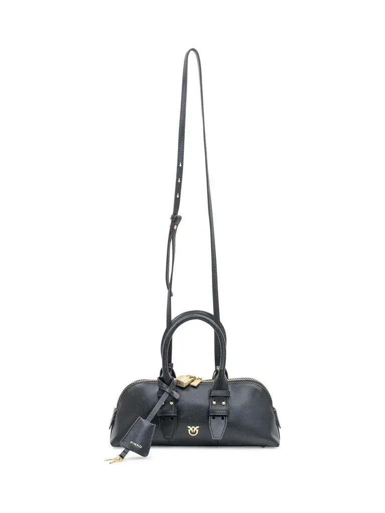 Small Escape Bag Baguette bowling bag in soft leather with a cotton lining and a slip pocket with card slots. Featuring an adjustable and detachable leather shoulder strap and handle so it can be carried by hand or on the shoulder, the bag is extremely versatile and practical. The two-way zip fastening on top is personalised with an original detail: a padlock decorated with the iconic Love Birds logo that can be opened and closed thanks to the key contained in the leather charm that completes the bag. Activate your PINKO bag: verify the authenticity of your product and access a personalised experience by scanning the Love Birds embroidery on the back of the bag with your smartphone!