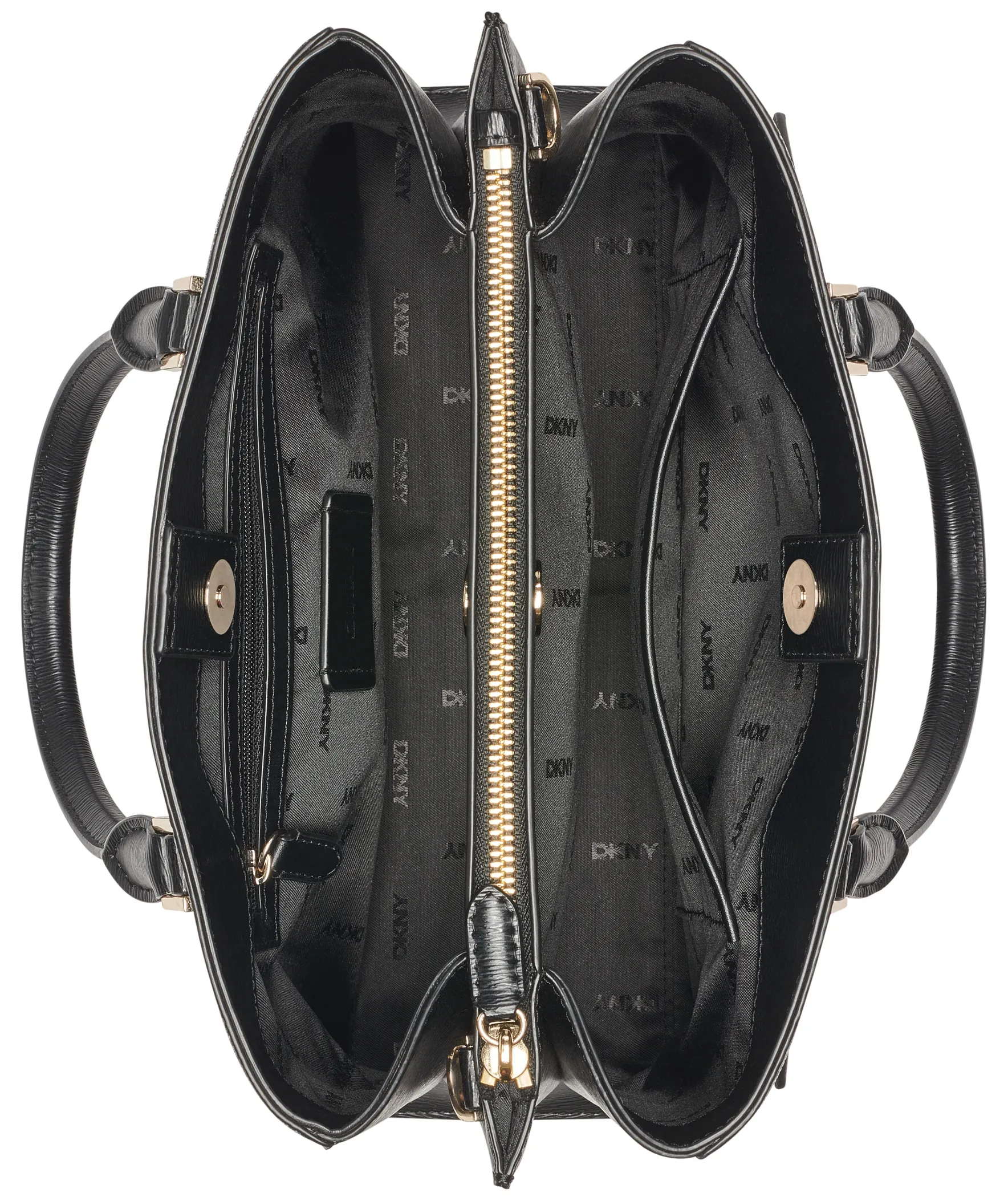 Women's handbag that can also be worn as a crossbody bag by DKNY. It closes with a magnetic clip and has two main single compartments for multiple uses.