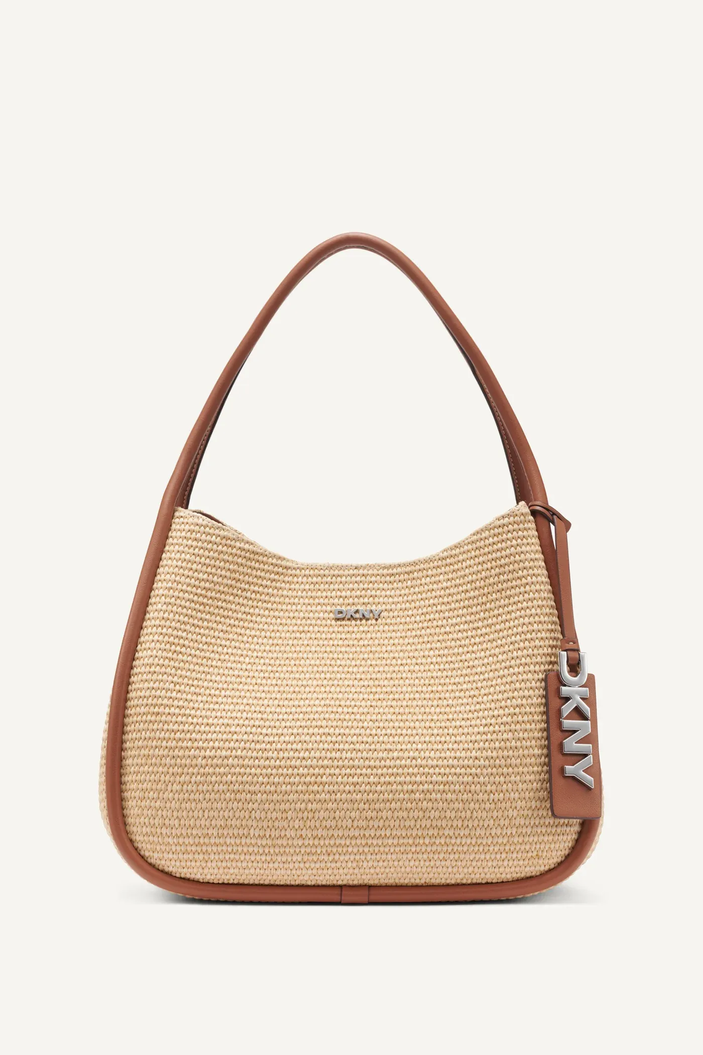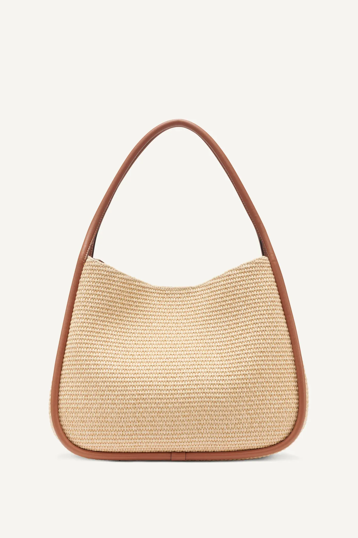 Think of this hobo as your shortcut to easy, breezy dressing—its woven shape adds instant texture to a midi swing dress and slides, while the roomy interior fits your phone, wallet, and sunglasses.