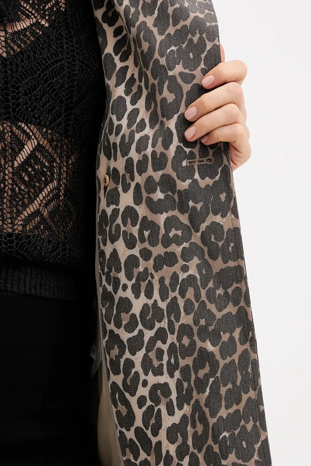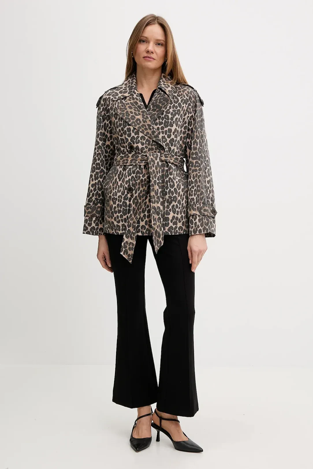A short trench coat from the Dkny collection. This unlined model is made of patterned fabric. Polyester ensures greater wrinkle resistance.
