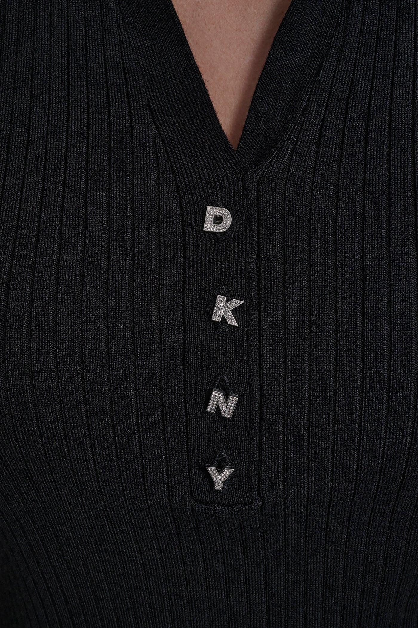 A polished classic with a subtle sparkle, this ribbed polo brings just the right amount of shine to everyday looks. The slim silhouette and rhinestone logo buttons feel refined yet playful—perfect tucked into tailored trousers or worn loose with relaxed denim.