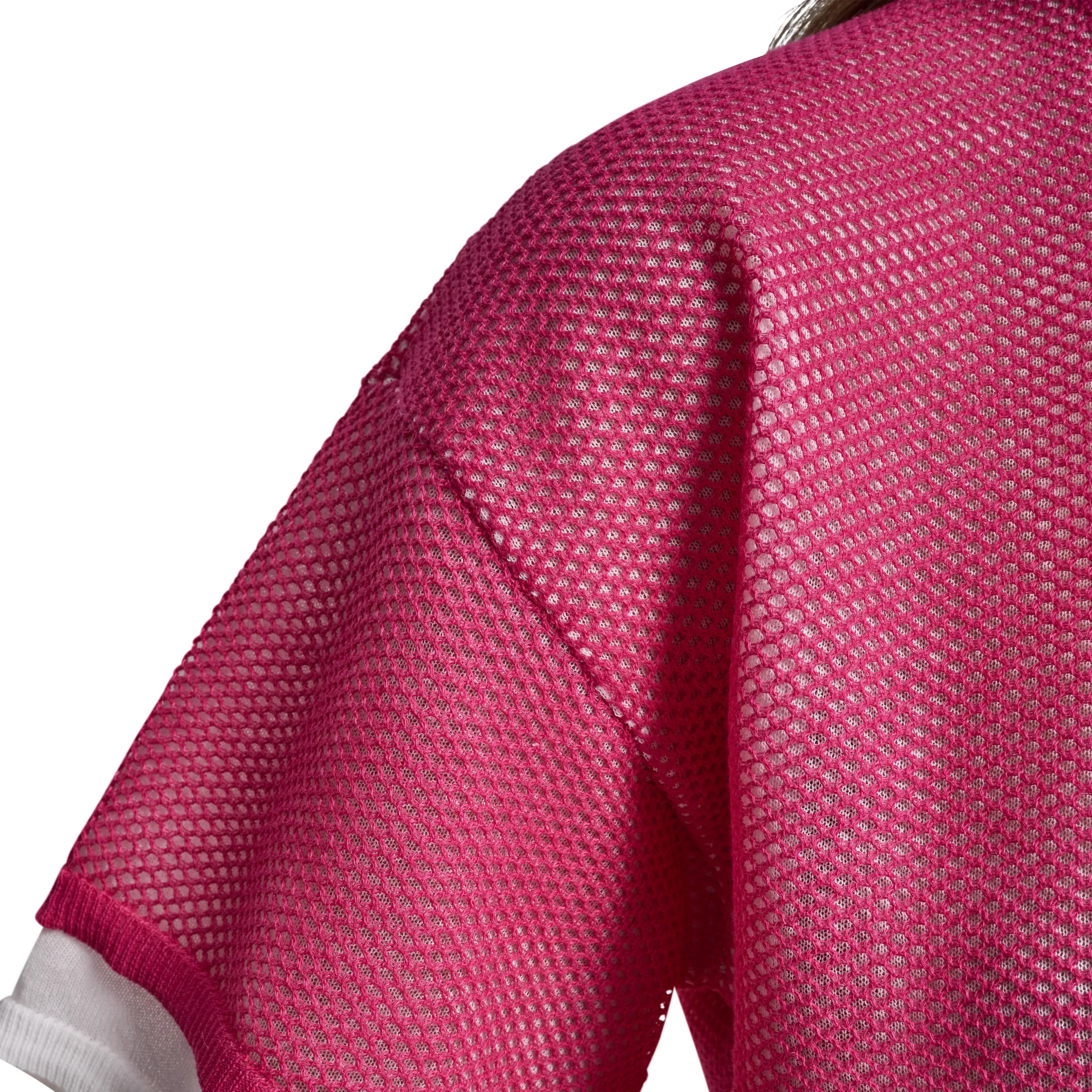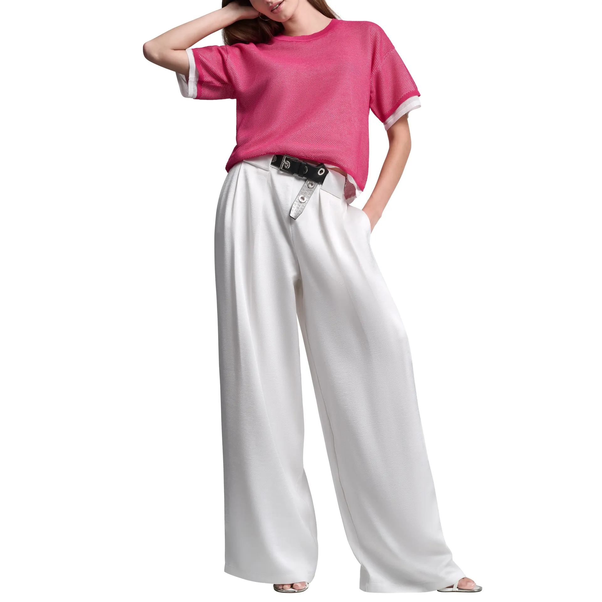 Layer with textured interest in this two-tone mesh Dkny sweater. A boxy fit and crewneck provide a contemporary, open-stitch design for stylish casual wear.
