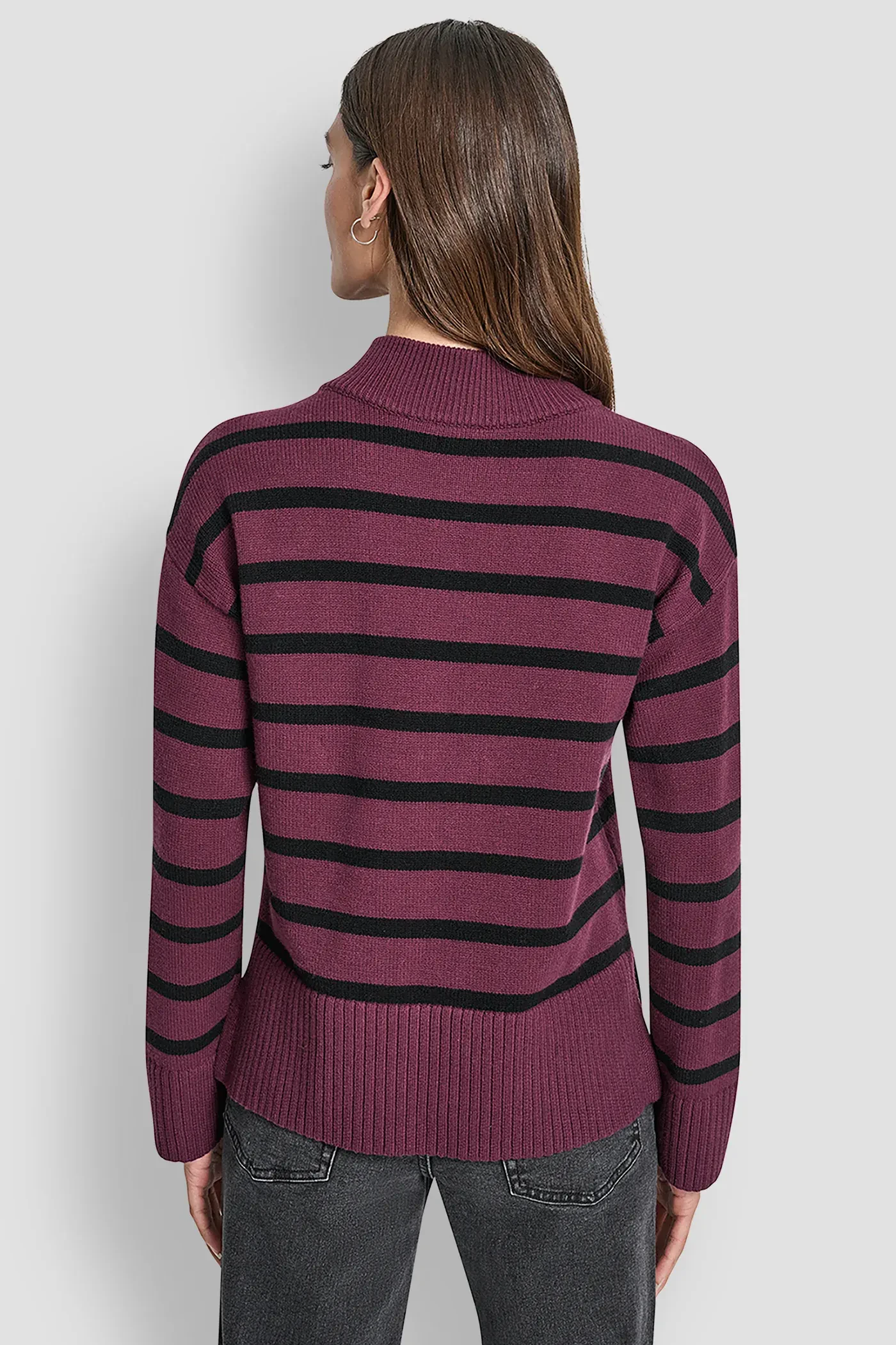 A modern take on a classic layer, this striped quarter-zip sweater blends cotton comfort with a polished mock neck—perfect for elevating casual looks.