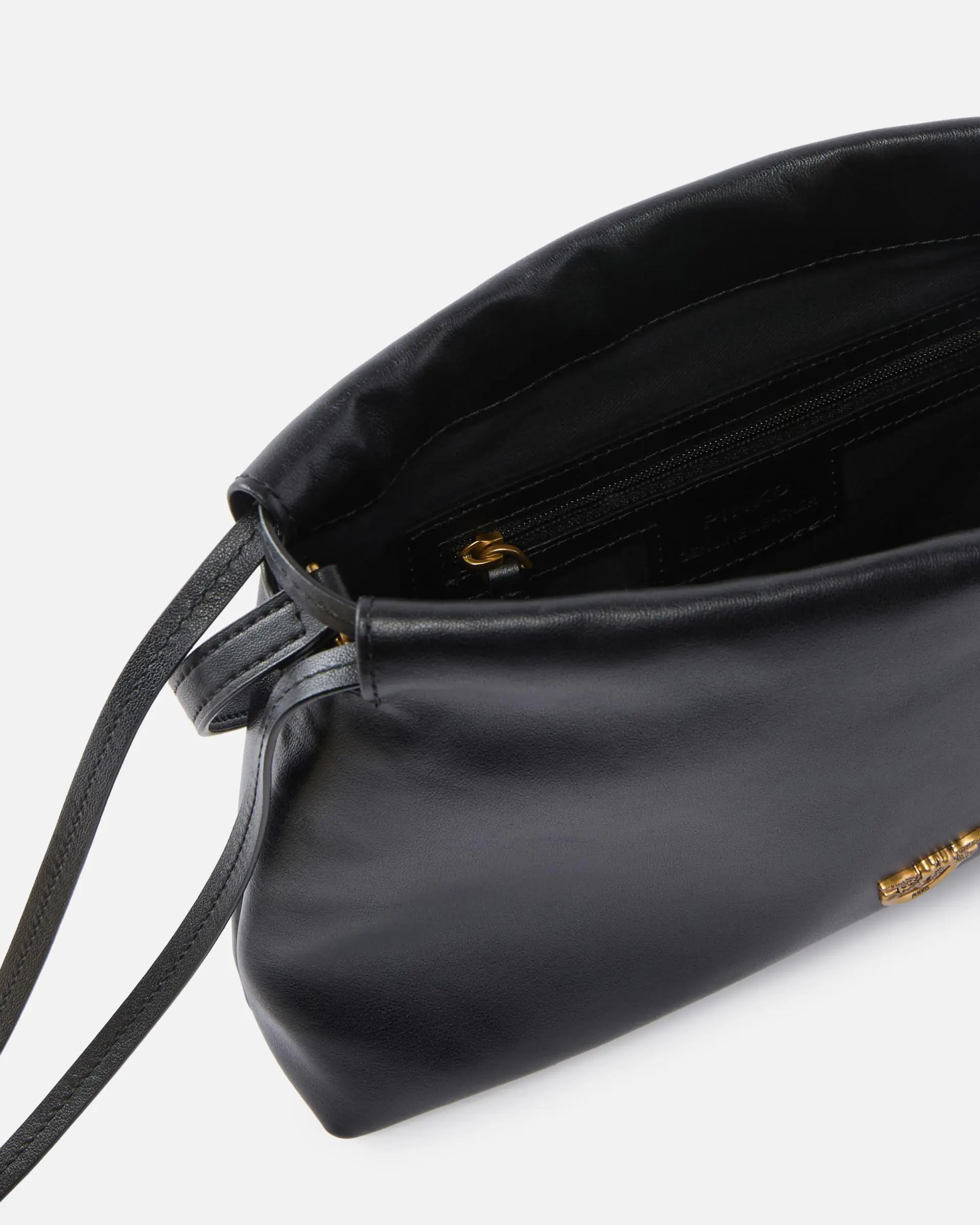 Small shoulder bag with soft, unstructured design, made from leather and featuring practical drawstring fastening. Featuring an adjustable leather strap so it can be worn on the shoulder or crossbody, the accessory is very versatile and practical for everyday use. The finishing touch is provided by the small Love Birds logo plaque symbolising the brand's singular style. The bag boasts a cotton fabric-lined interior and a zipped slip pocket. Activate your PINKO bag: verify the authenticity of your product and access a personalised experience by scanning the Love Birds embroidery on the back of the bag with your smartphone!