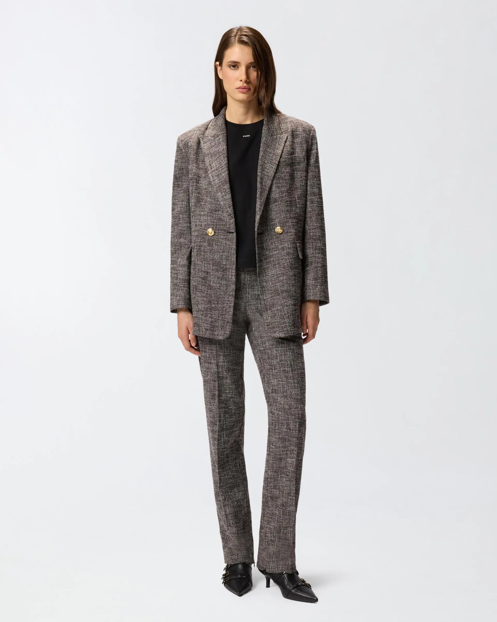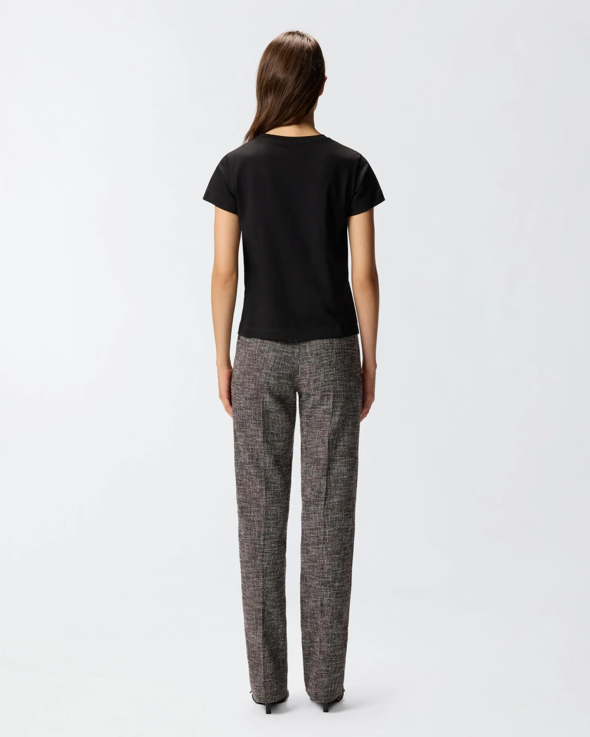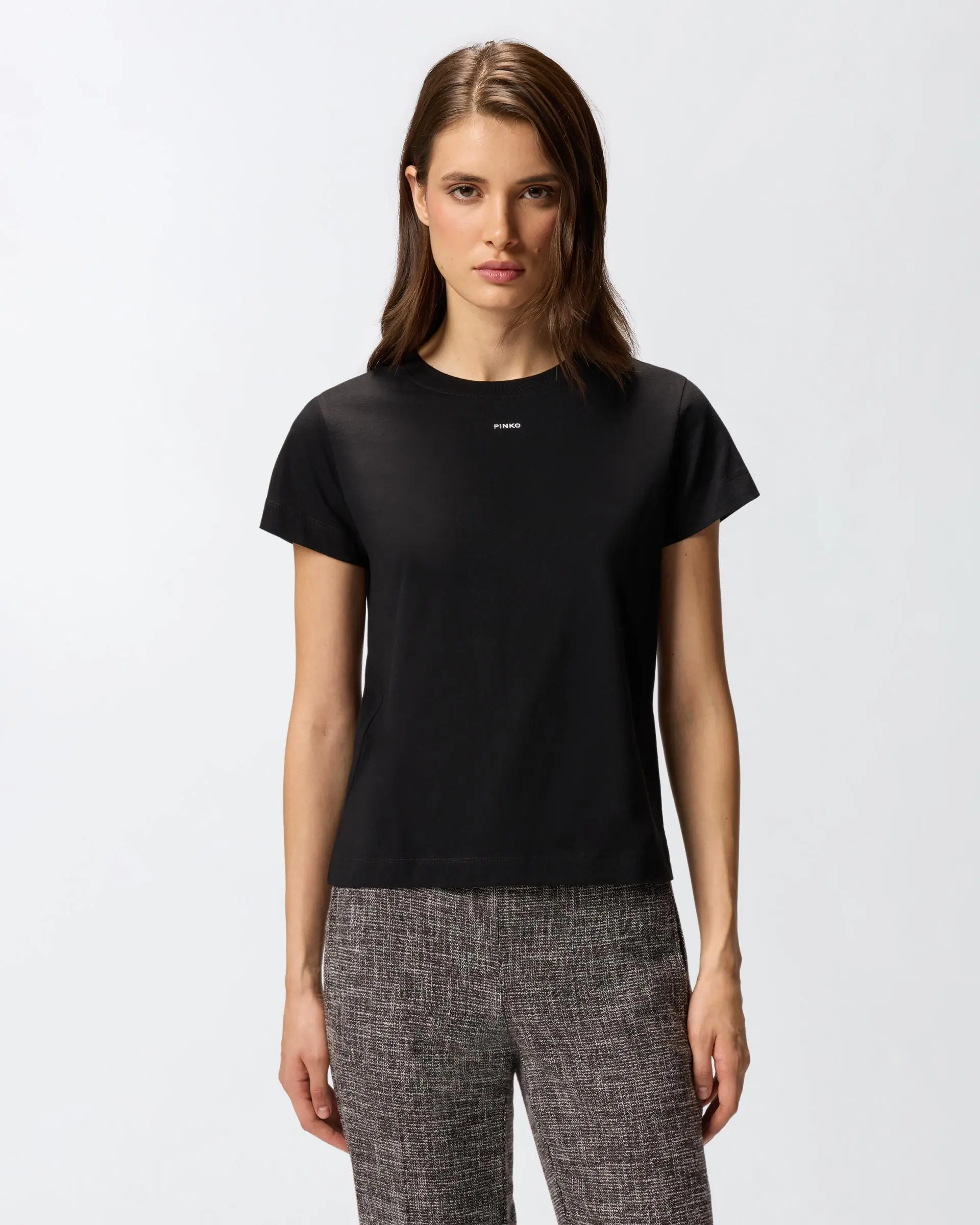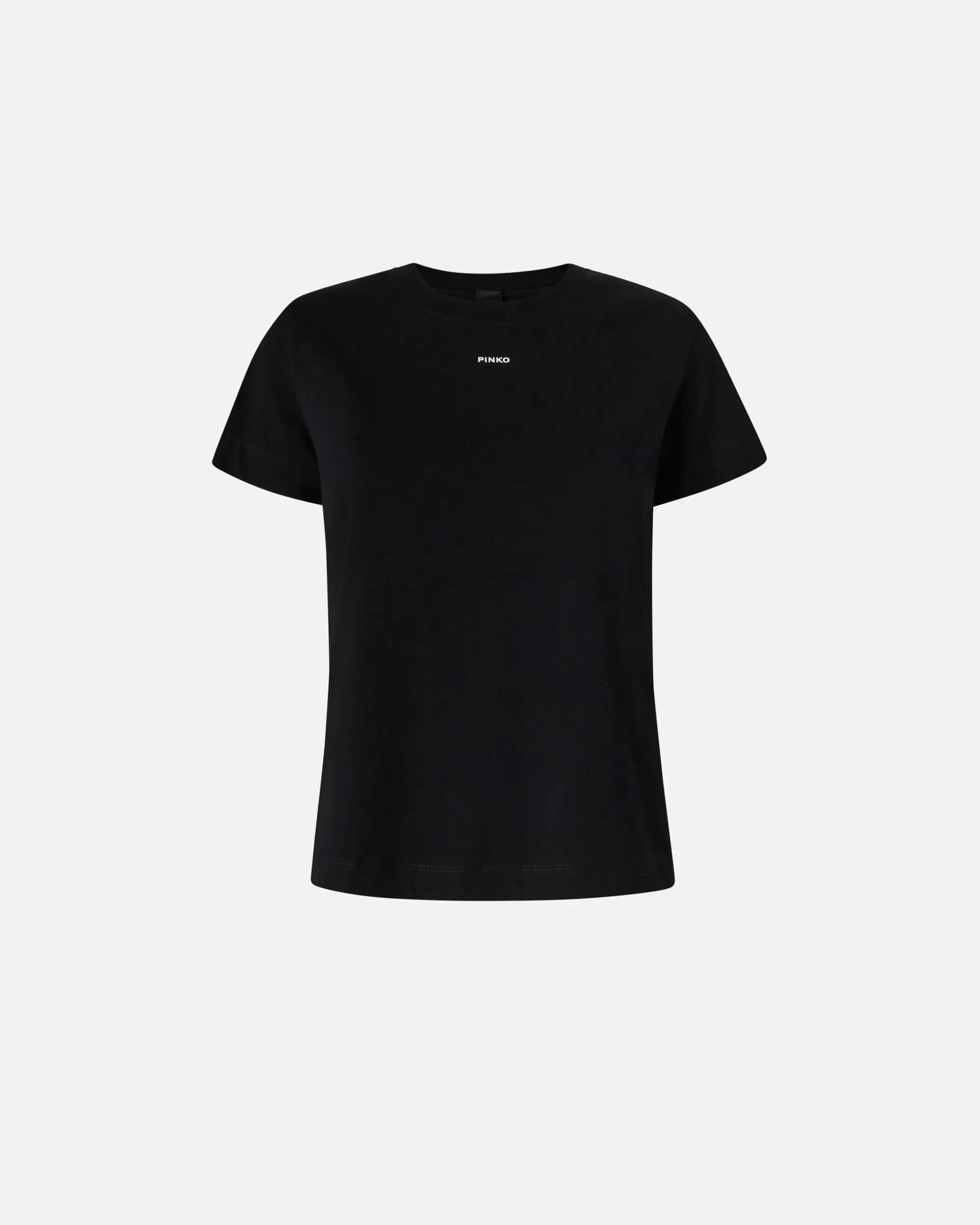 Slightly slim-fitting T-shirt in cotton jersey, with short sleeves and the small PINKO lettering logo print on the front. This T-shirt will work seamlessly with your favourite trousers, elevating your look in a simple, elegant and original way.