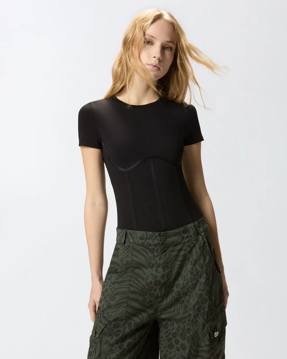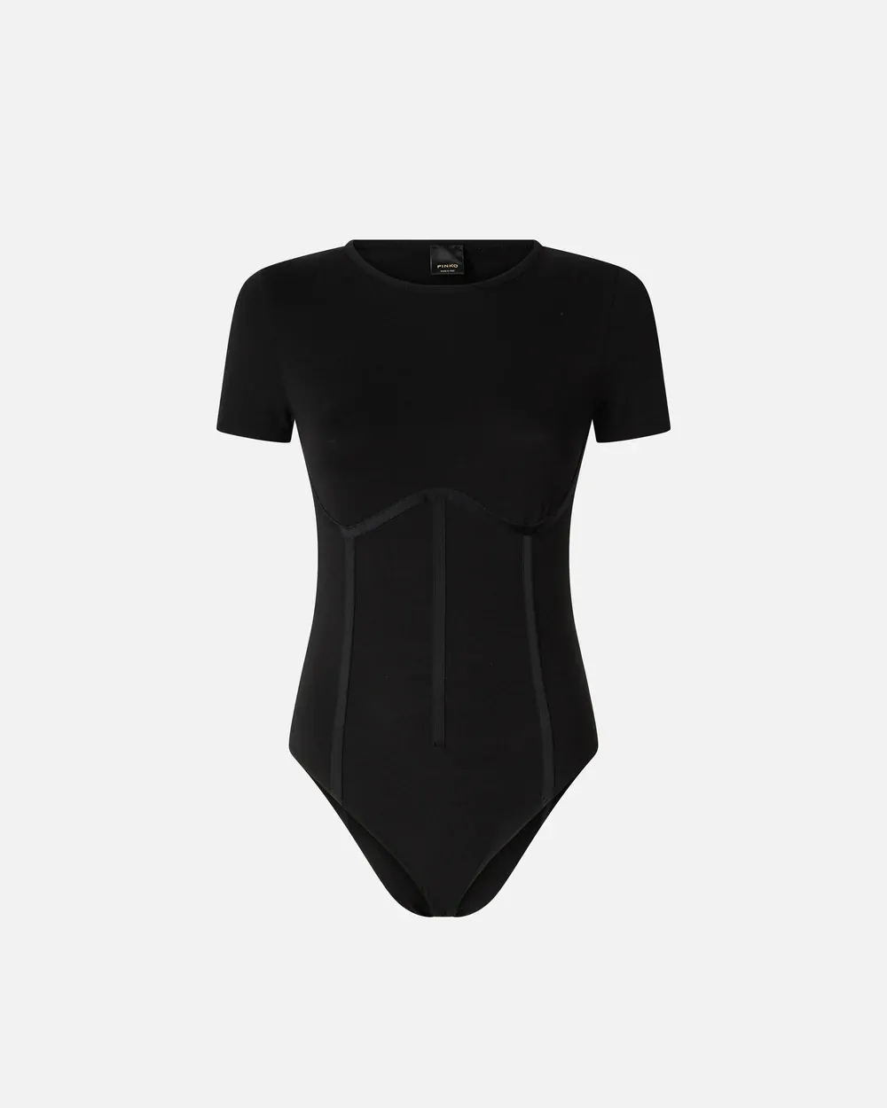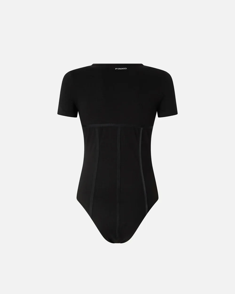 Short-sleeved crew-neck bodysuit in stretch cotton jersey with a soft, compact feel that adapts to the shape of the body like a second skin. The model features seductive bustier details with a shiny, in-tone effect that help to enhance the figure. This clean, versatile and refined piece can be worn with a pair of jeans for a date or after-work drinks. - CORONAMENTO BODYSUIT