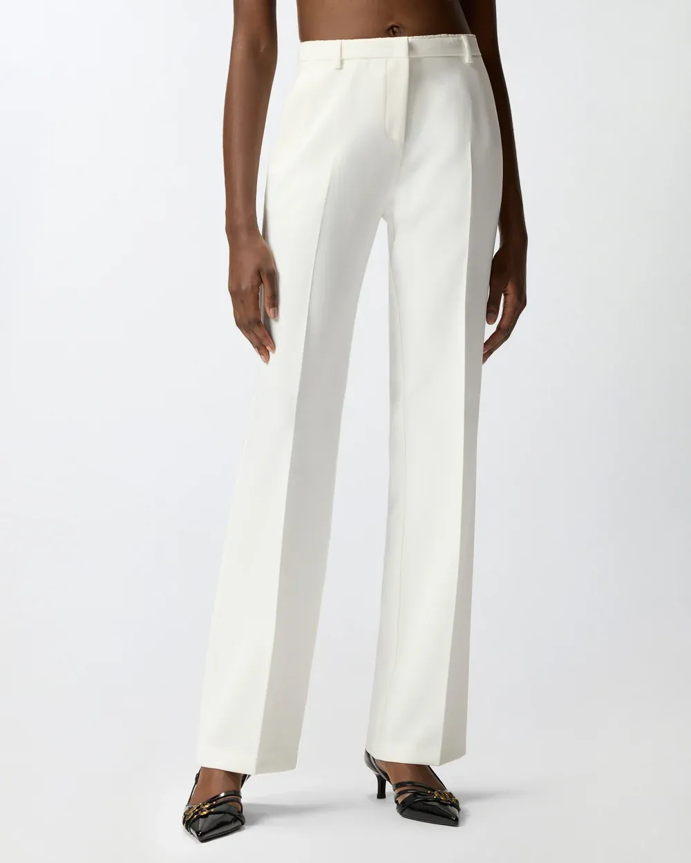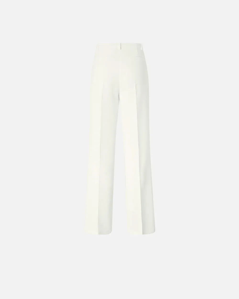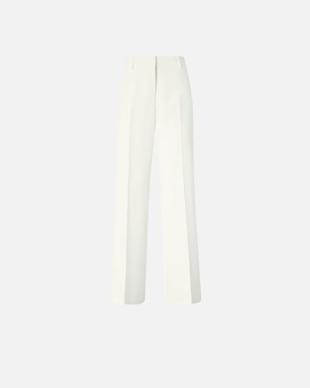 Straight-cut trousers with refined pressed central pleats down the legs and two welt pockets on the back. This garment, lined with lightweight georgette, is made from technical canvas—a comfortable, breathable fabric that provides an irresistible combination of functionality and modern elegance. The hidden front fastening completes the model while keeping the silhouette clean and simple. Pair the trousers with the matching jacket for a refined suit to wear to ceremonies and special occasions. - EUCALIPTO TROUSERS