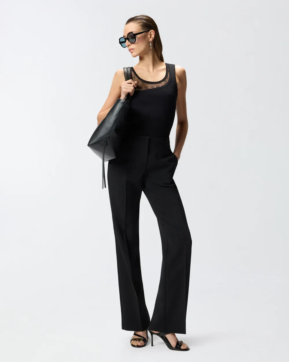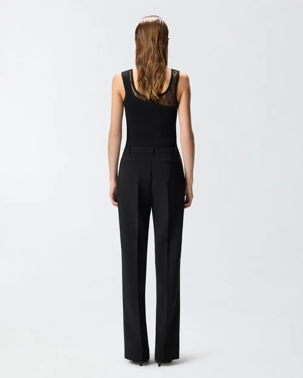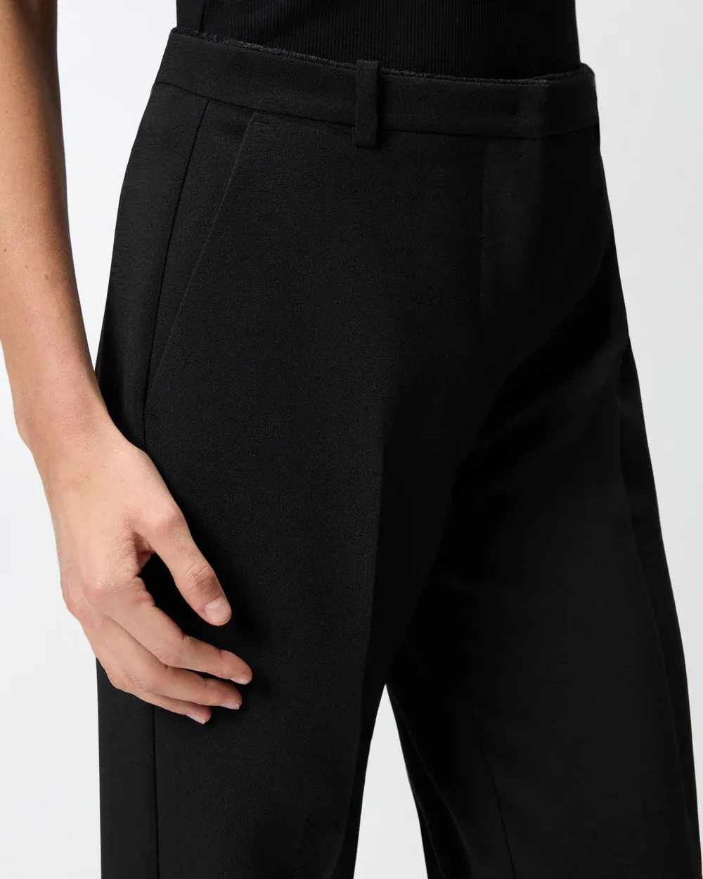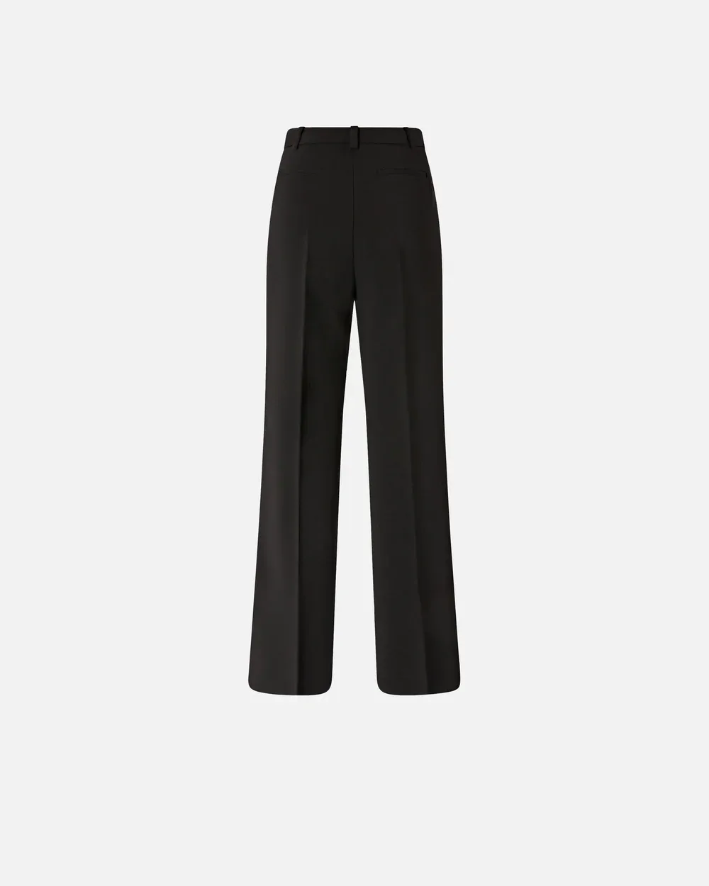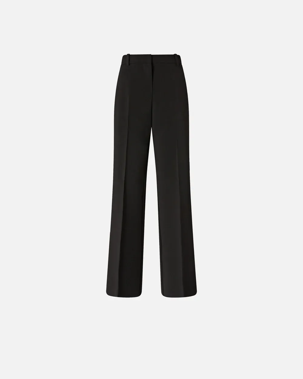 Straight-cut trousers with refined pressed central pleats down the legs and two welt pockets on the back. This garment, lined with lightweight georgette, is made from technical canvas—a comfortable, breathable fabric that provides an irresistible combination of functionality and modern elegance. The hidden front fastening completes the model while keeping the silhouette clean and simple. Pair the trousers with the matching jacket for a refined suit to wear to ceremonies and special occasions. - EUCALIPTO TROUSERS