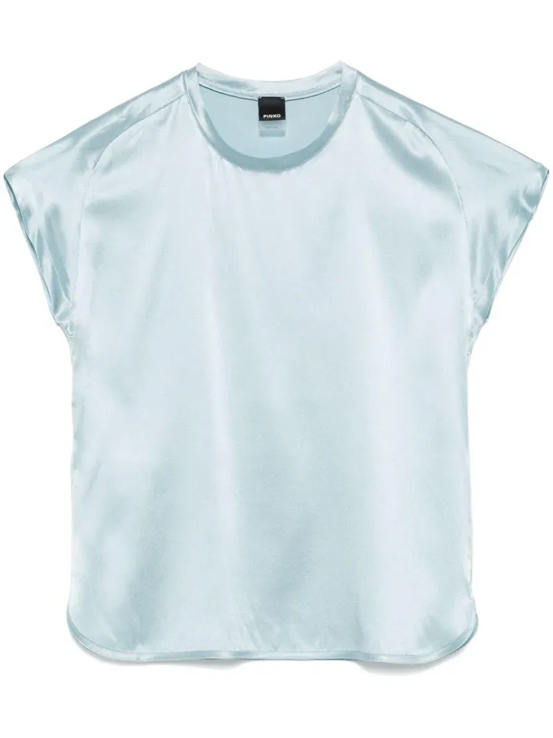 Pinko women's blouse made of lightweight stretch silk-blend satin, which enhances any look with its shiny and refined texture. The loose fit of the top is complemented by a round neckline and short cap sleeves, an original touch that makes it one of a kind. Elegant, versatile, and always perfect.