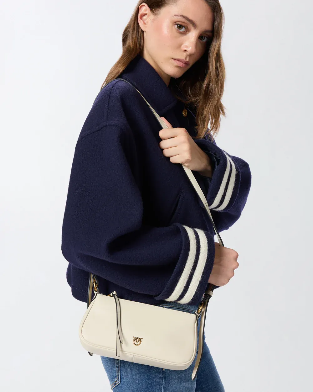 Mini Half Moon bag with a distinctive narrow and elongated rectangular shape, made from soft leather and equipped with a main zip fastening to keep your essentials safe. Featuring an adjustable leather shoulder strap, the bag is extremely versatile and practical for everyday life. The refined design is complemented by the Love Birds logo, which embodies the inimitable style of the brand. Activate your PINKO bag: verify the authenticity of your product and access a personalised experience by scanning the Love Birds embroidery on the back of the bag with your smartphone! - HALF MOON MINI
