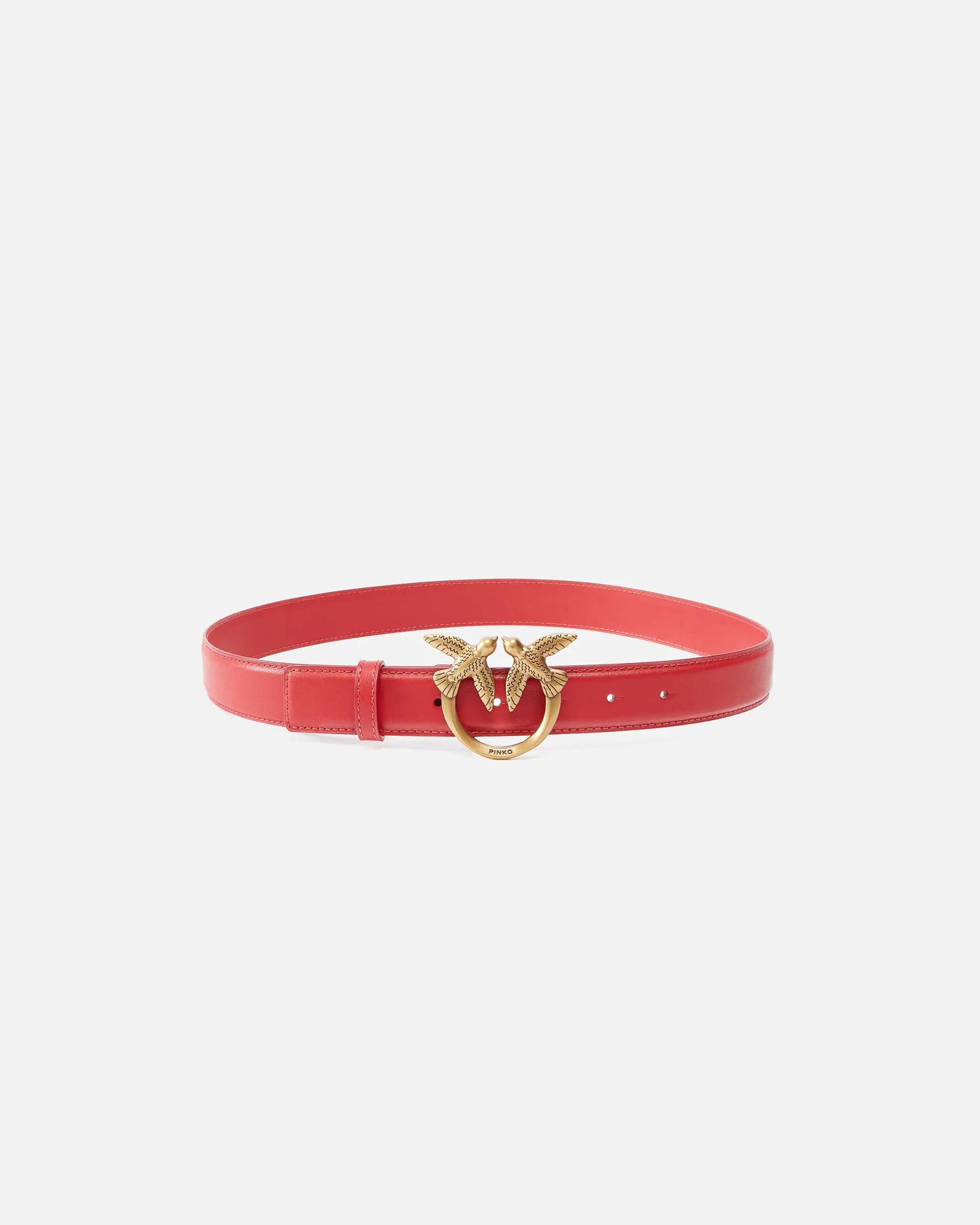 Belt in soft, silky leather, with metal Love Birds Diamond Cut buckle. - LOVE BIRDS LEATHER BELT 3CM