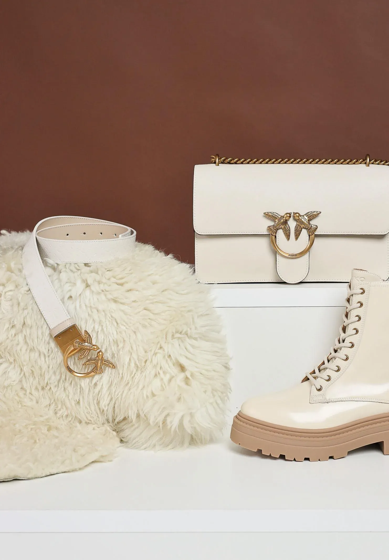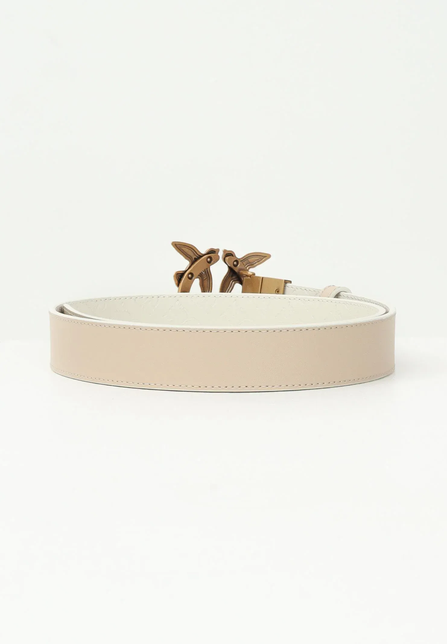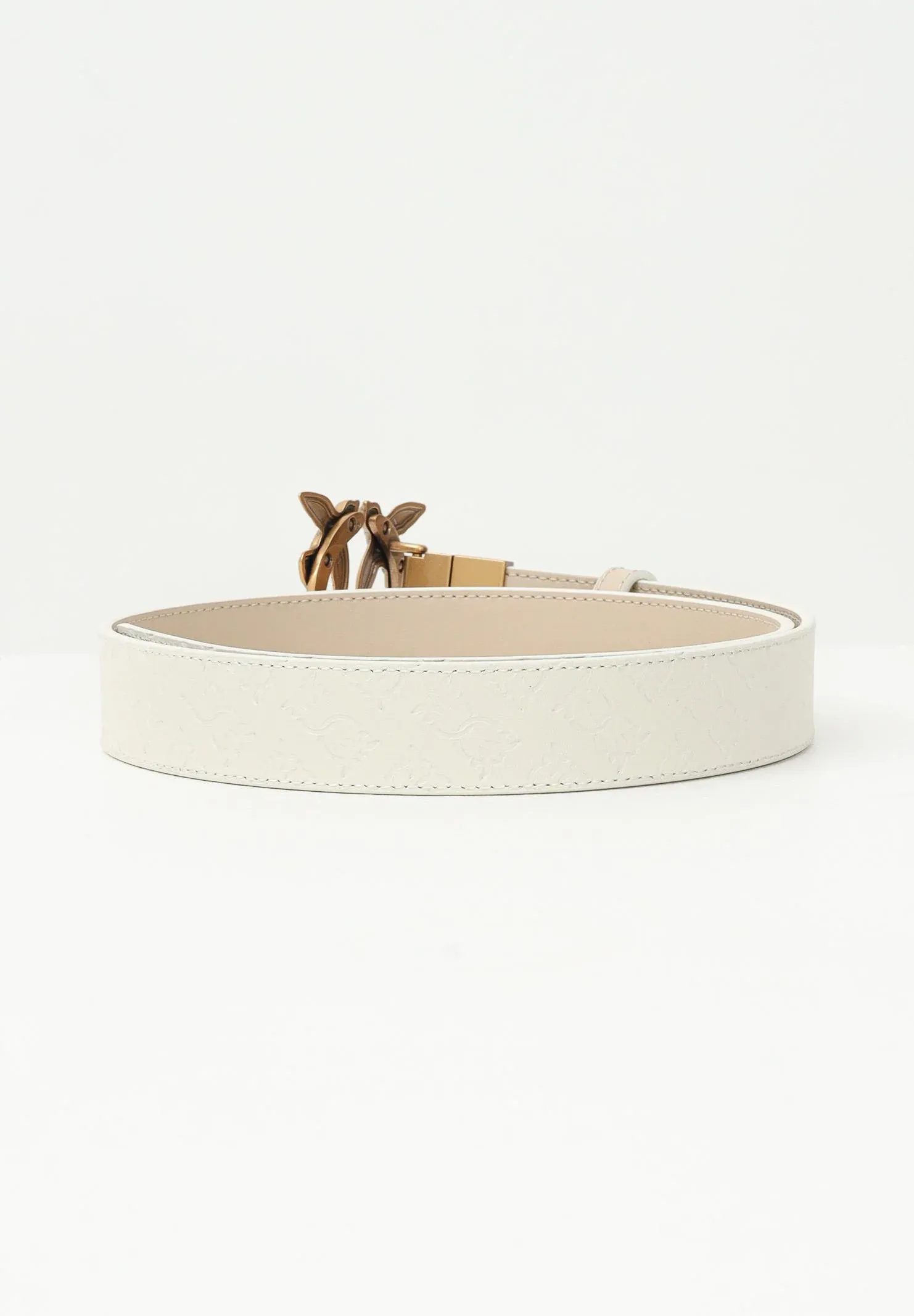 This 3cm high belt can be worn on both the smooth textured side and the side featuring the Love Birds Monogram pattern made with the imprimè technique. The belt is personalized with a Love Birds Diamond Cut buckle. Length size XS = 79cm. Autumn winter season.