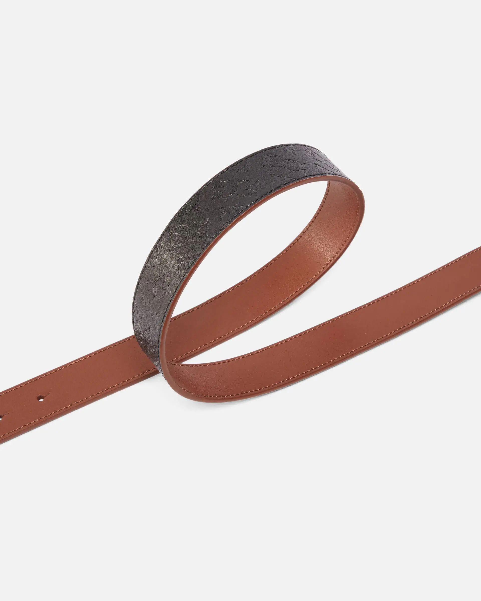 This 3cm high belt can be worn on both the smooth textured side and the side featuring the Love Birds Monogram pattern made with the imprimè technique. The belt is personalized with a Love Birds Diamond Cut buckle. Length size XS = 79cm. Autumn winter season.