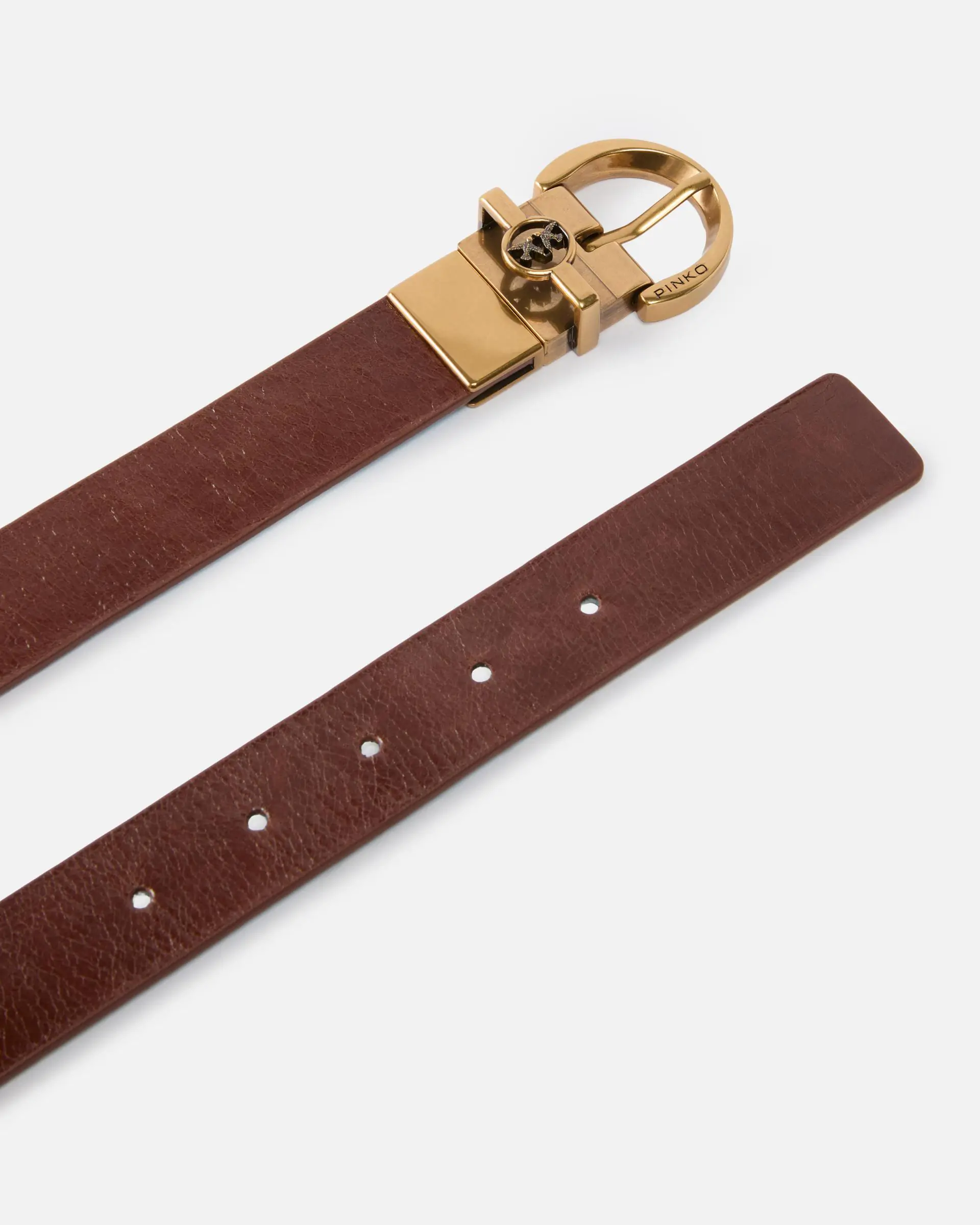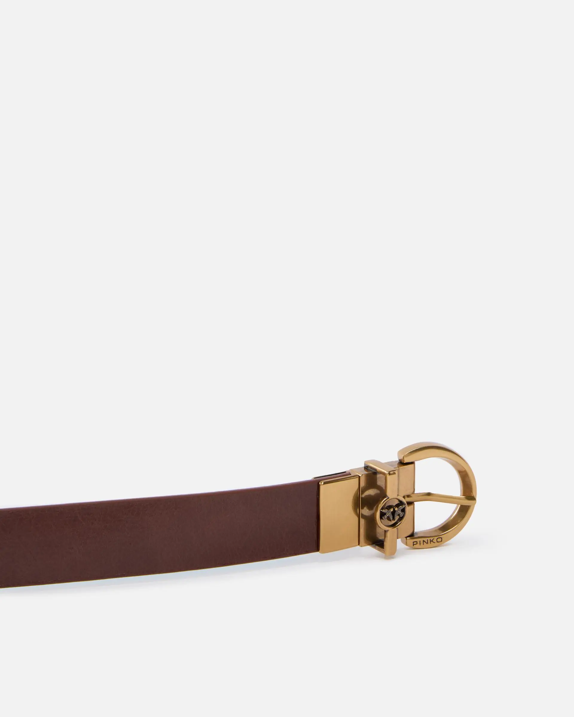 Reversible 3-cm belt with one side in polished leather and the other in soft, silky leather with a very smooth texture and contrasting colour. The buckle with Love Birds logo and PINKO lettering logo is made from gold-plated metal. Refined and striking, this accessory will become the undisputed star of all your outfits, whatever the occasion.