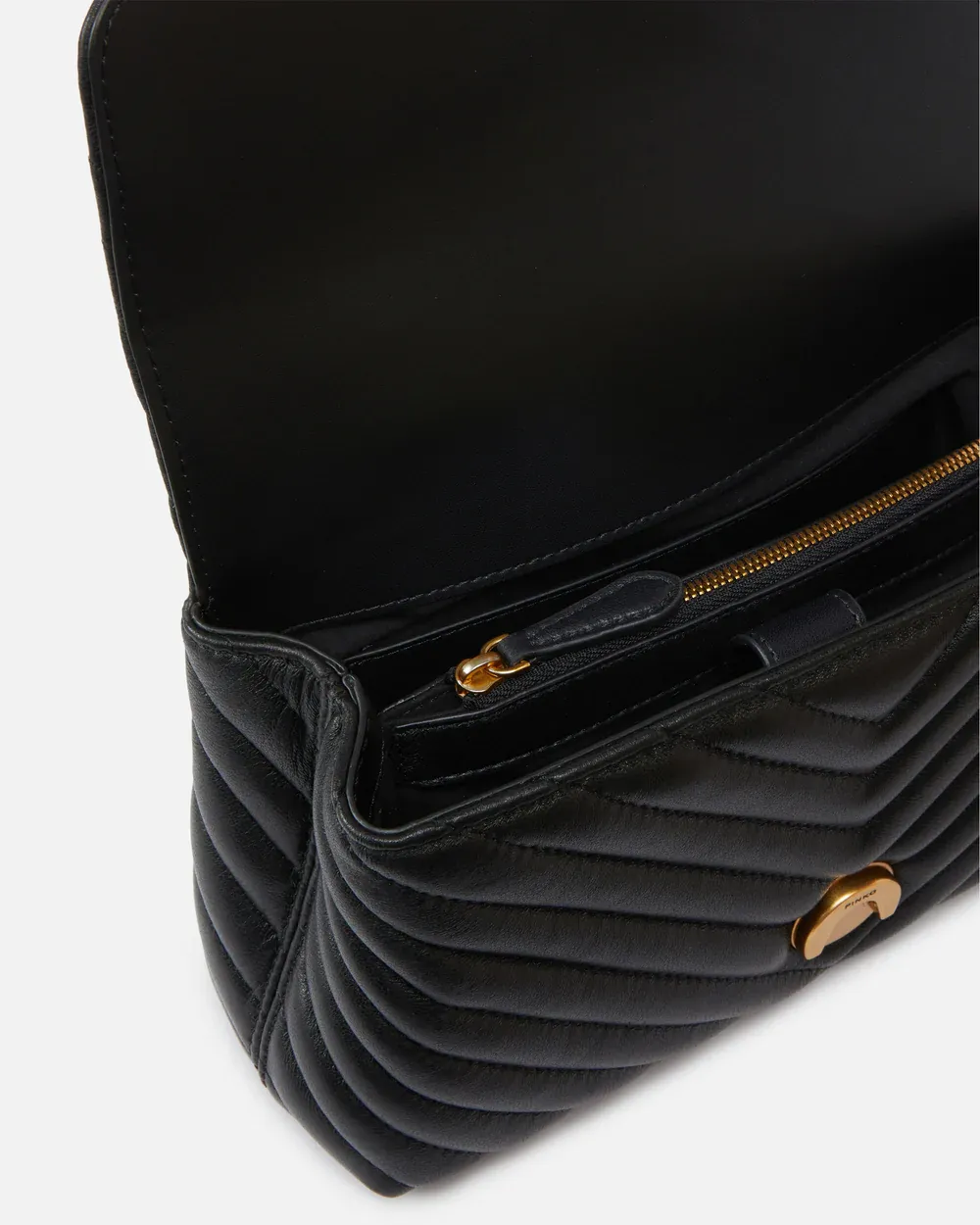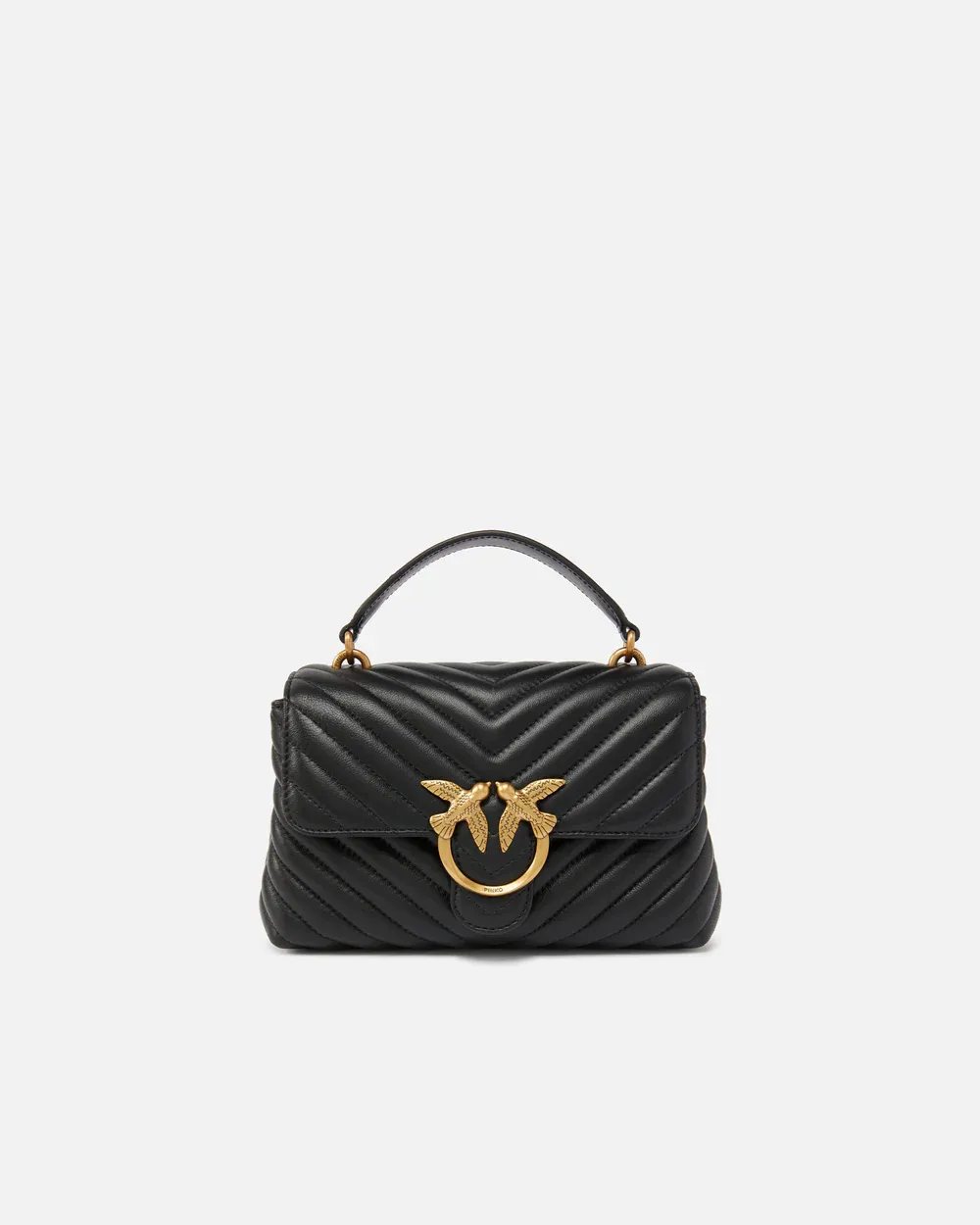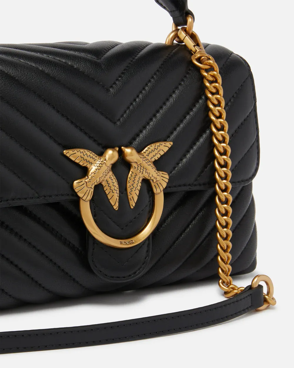 Mini Lady Love Bag Puff in quilted nappa leather with chevron pattern. The fastening is complete with the iconic metal Love Birds Diamond Cut buckle. The accessory boasts a microsuede-lined interior, complete with a zipped centre divider pocket and slip pocket. Top handle and shoulder strap that combines the classic round-link metal chain with a practical, adjustable nappa leather pad. Activate your PINKO bag: verify the authenticity of your product and access a personalised experience by scanning the Love Birds embroidery on the back of the bag with your smartphone! - LOVE LADY PUFF MINI CL