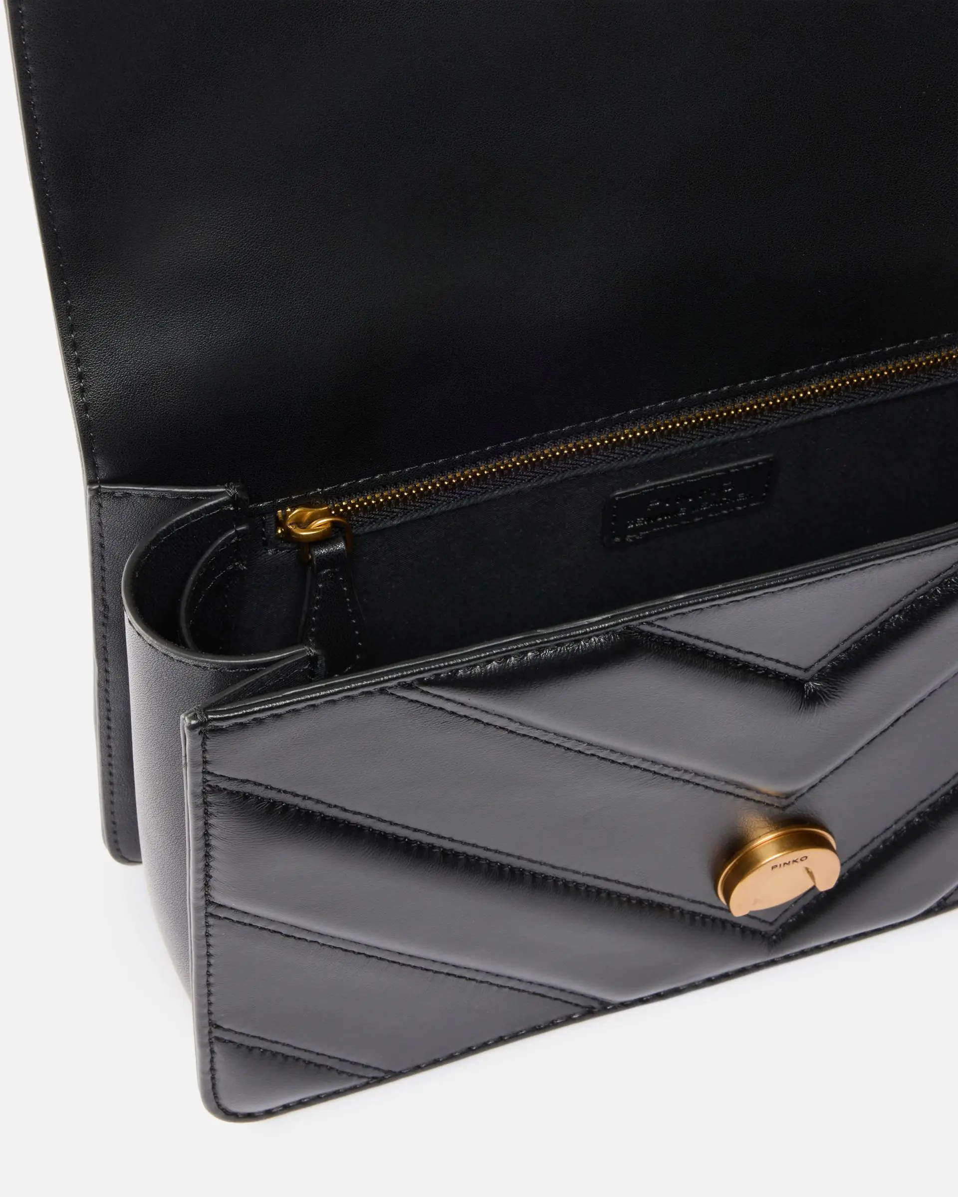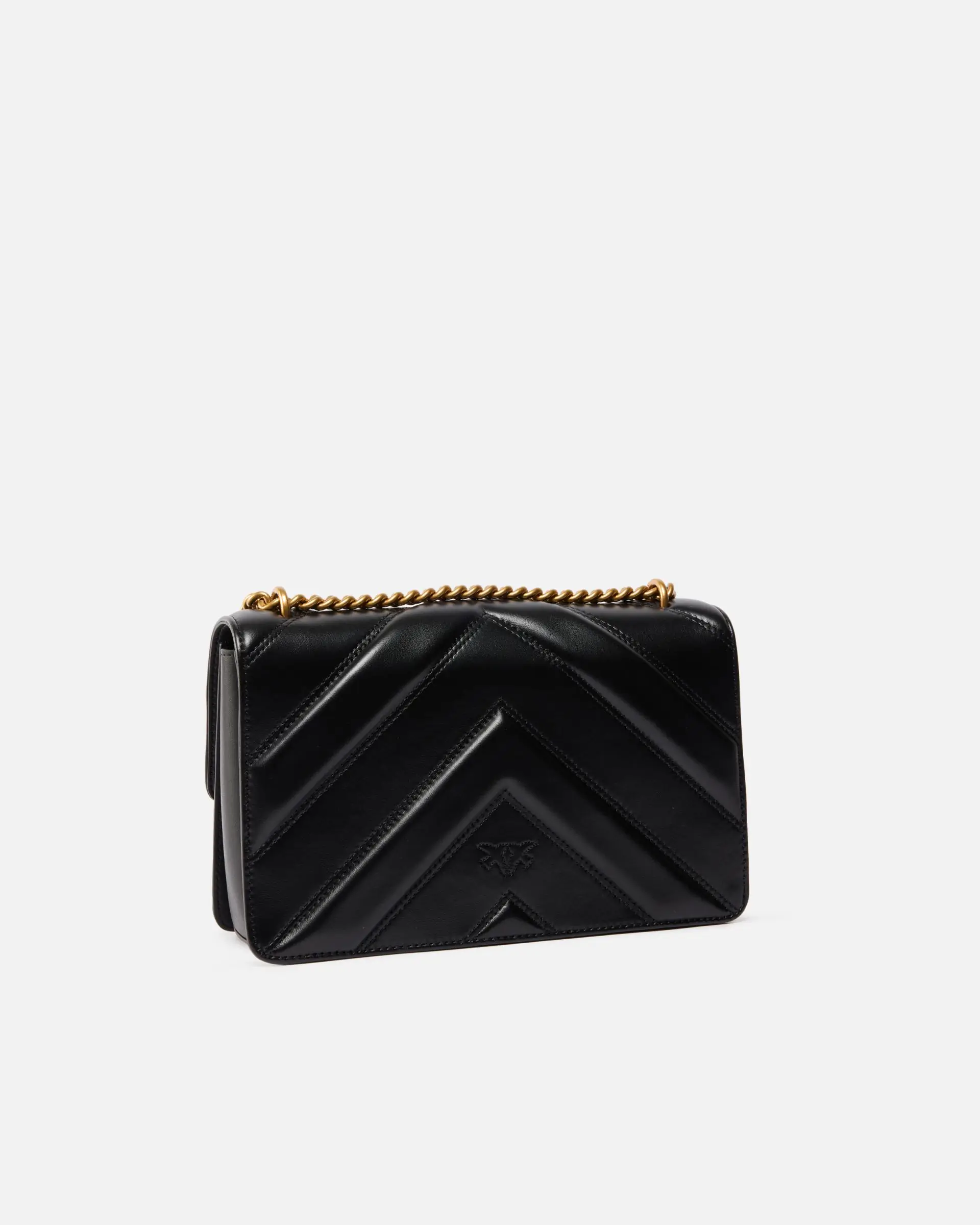 Love Bag One Light medium handbag in nappa leather with chevron-patterned quilting and light, unstructured construction. Featuring an adjustable sliding chain strap with leather pad for hand carry or shoulder or crossbody wear, this bag is very versatile and practical. The flap fastening is accompanied by the timeless buckle featuring the Love Birds Diamond Cut logo. The accessory features a cotton drill-lined interior and a zipped slip pocket. Activate your PINKO bag: verify the authenticity of your product and access a personalised experience by scanning the Love Birds embroidery on the back of the bag with your smartphone!