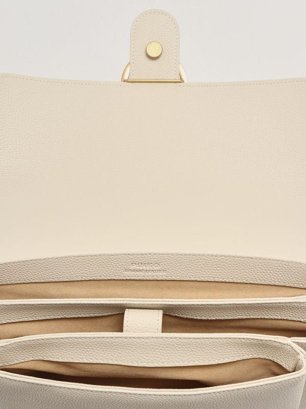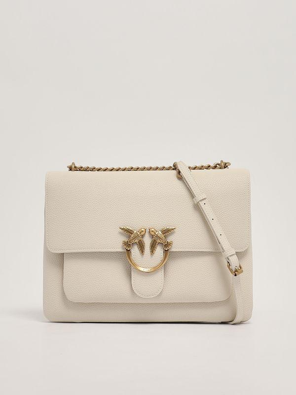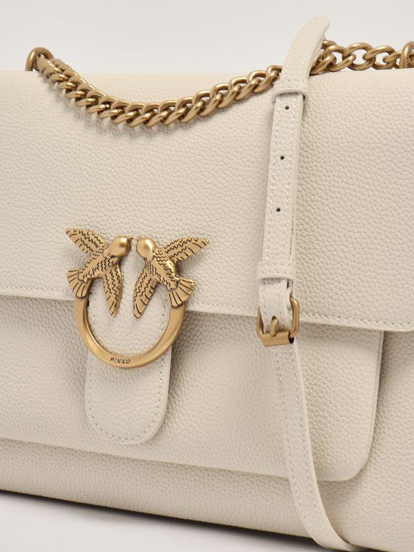 Women's large crossbody bag with strikingly soft shape, made from fine tumbled leather. This large bag is constructed with several compartments lined with cotton drill and accompanied by a flap customised with a golden metal Love Birds Diamond Cut maxi buckle. The shoulder strap includes a practical adjustable leather shoulder pad and is slidable: it can be doubled, allowing you to wear it on the shoulder. All the space, practicality and style you're looking for in an everyday bag. Activate your PINKO bag: verify the authenticity of your product and access a personalised experience by scanning the Love Birds embroidery on the back of the bag with your smartphone!